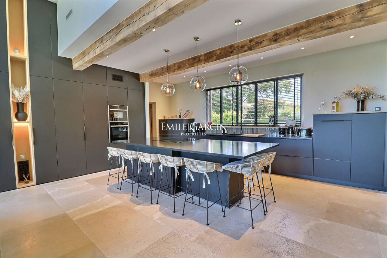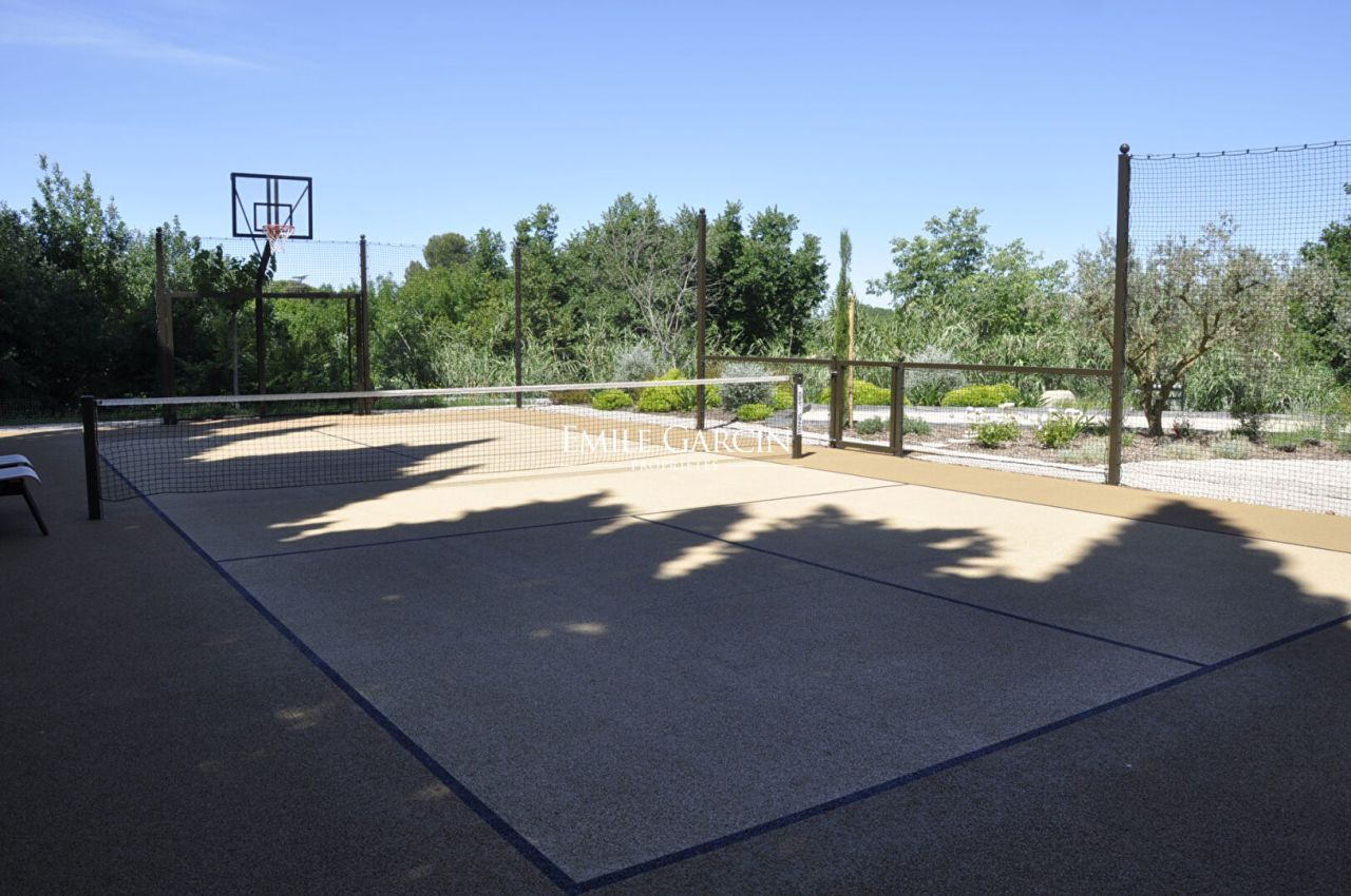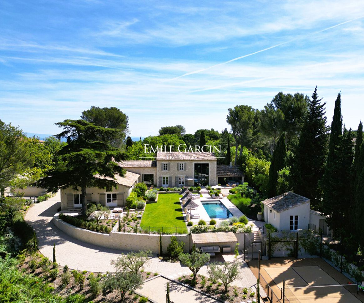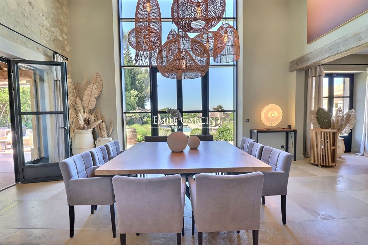 Located just 5 minutes by foot from the centre of Saint Rémy de Provence, this magnificent contemporary property offers exceptional views of the Alpilles mountain range. Its facilities include: a beautiful heated swimming pool (14 x 4m), a second swimming pool (3 x 3 m), a multi-sport tennis court, a pétanque area and a home gym. 7 bedrooms, 7 bathrooms. Fully air-conditioned. The perfect setting for your holidays among family or friends.