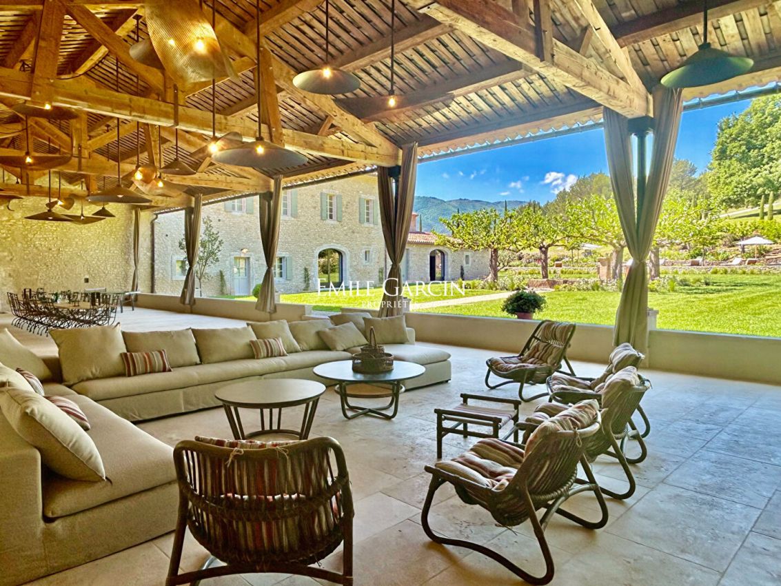 Accessed via a stunning driveway lined with ancient plane trees, arriving at this exceptional property is akin to discovering a well-kept secret. Nestling in the heart of 150 hectares of hills, forests and meadows boasting spectacular views of the Luberon, the main house presents approximately 1,000 sq.m of living area. It features six ensuite bedrooms, a large dormitory, vast light-filled living spaces, a living room, a kitchen-diner, a TV lounge, a library, a gym, a magnificent 300-sq.m reception area, a heated swimming pool (20 x 6 m) and a pétanque area. Nearby, the guest house of approximately 300 sq.m offers three additional bedrooms, a large living room, a TV and games area, a second heated swimming pool (12 x 5 m) and a second pétanque area. The grounds are full of natural treasures and rare features: a pond and a lake with a jetty and boats, a river dotted with waterfalls hidden in lush greenery, a tennis court, a discreet helipad, and miles of private footpaths to explore without ever leaving the property. High up in the hills, a viewpoint accessible by 4x4 (provided) offers breathtaking panoramic views of the Luberon: a unique setting suspended between heaven and earth. Thoughtfully designed to offer comfort, elegance and privacy, this unique property is perfect for all lovers of nature, beauty and absolute tranquillity. Please contact us directly for further information.