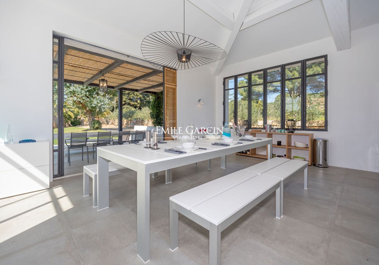 Located in the sought-after La Moutte area of the Saint-Tropez peninsula, this modern villa presents 300 sq.m of living area. It offers spacious reception areas and five ensuite bedrooms. Heated swimming pool. Pool table. Registration number: 83119002266HT