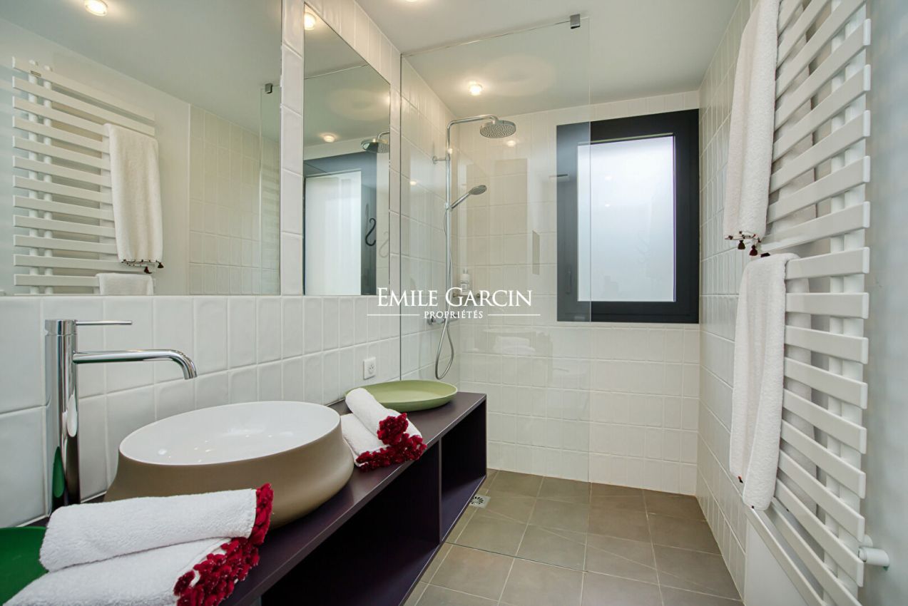 Idyllically located between the village of Saint-Tropez and the unspoiled beachfront at Salins, this recently constructed villa presents 330 sq.m of living area. Standing out for its elegant architecture and spacious interior, the property is designed to ensure absolute comfort in an ambiance of modernity and refinement. Offering 5 bedrooms and 5 bathrooms, this spacious property is the ideal setting for a break among family and friends. Its grounds are beautifully landscaped and feature an infinity pool, as well as a garage and space for parking. A unique property in which to bask in the charm of Saint-Tropez. Registration number: 83119006154HT