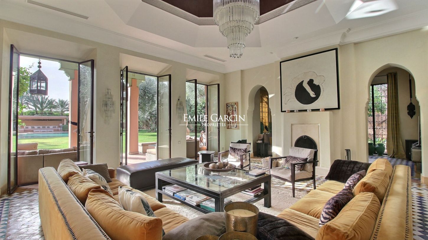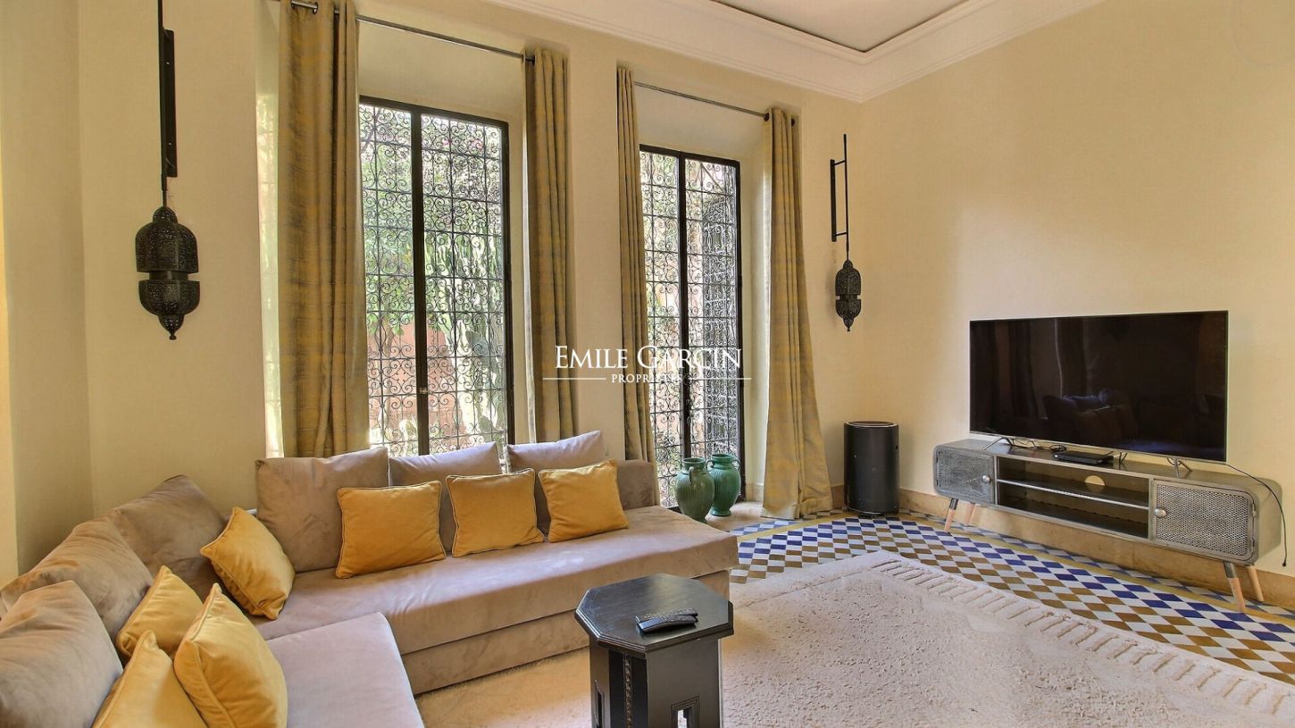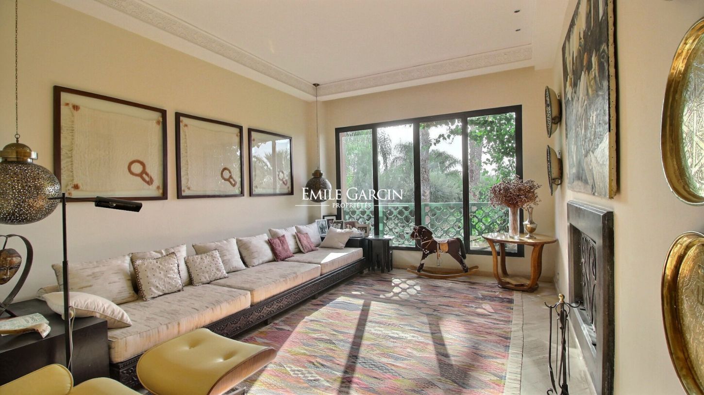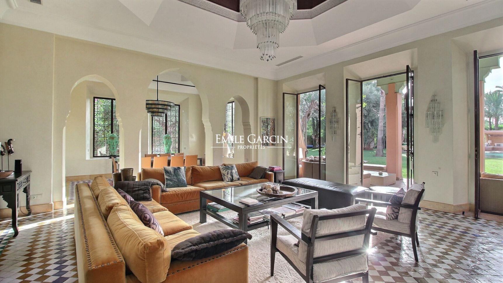 This traditional house presents 900 m² of living area on 3500 m² of private grounds on the Amelkis golf complex. Decorated with taste and refinement, the interior features a large triple living room with fireplace, a dining room and seven bedrooms (including six doubles and a children's bedroom with 4 bunk beds). It can accommodate up to 16 people. Its leafy landscaped gardens make it the perfect setting for a relaxing holiday among friends or family. Large heated swimming pool. Ping-pong table, bicycle, hammam and massage room. From 1,875 EUR per night