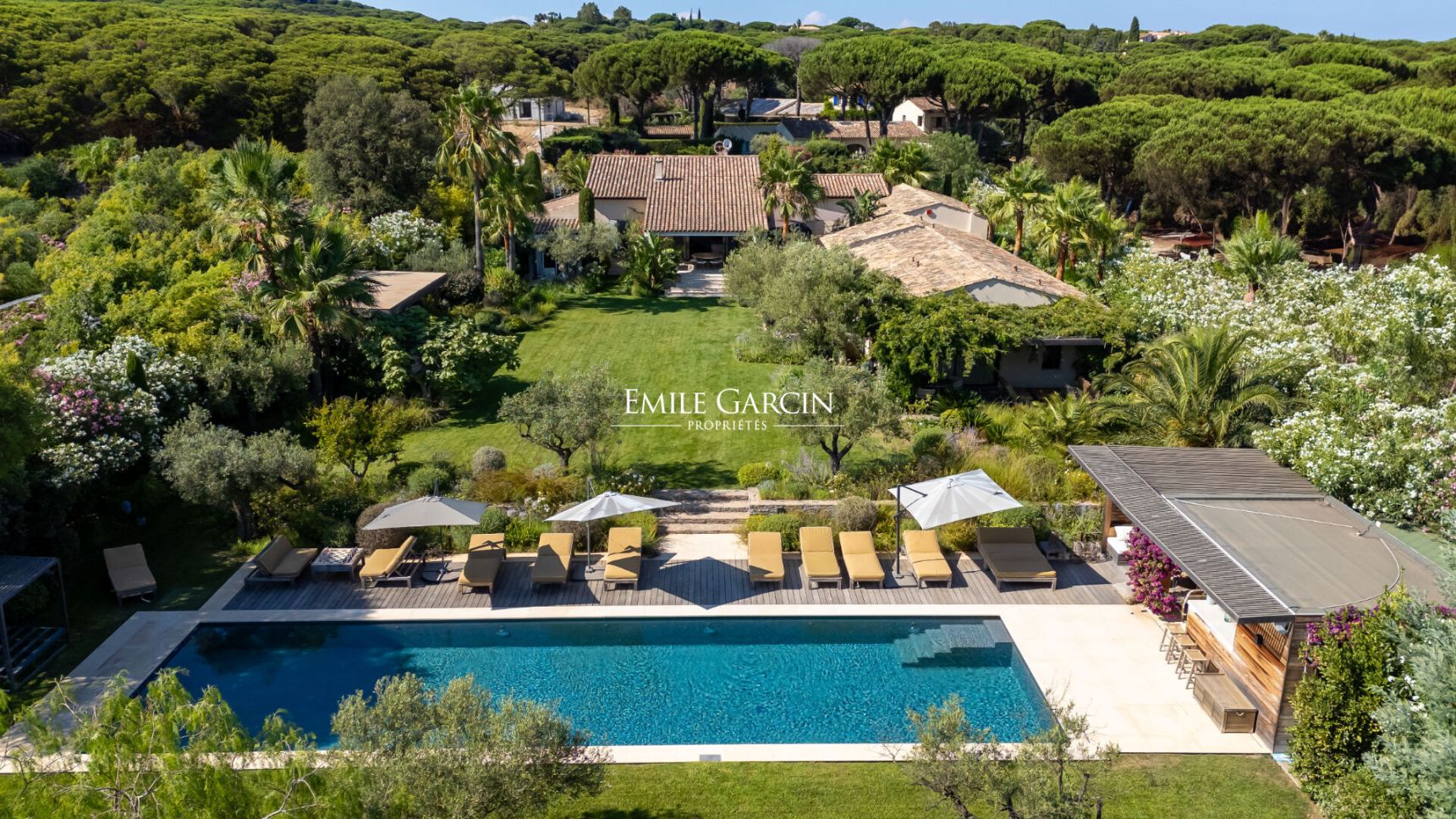 Just a few minutes by foot from the famous beaches of Pampelonne, this sumptuous property is composed of two houses combining comfort and elegance. Nestled in calm natural surroundings, it offers an idyllic setting for an unforgettable holiday under the sun of Saint-Tropez. With its vast landscaped garden, its 18-metre swimming pool and its pétanque area, this property is a veritable invitation to relaxation. Its 7 bedrooms and 7 bathrooms guarantee optimal levels of comfort for a perfect holiday among family or friends, all in an exclusive setting close to the beaches and most iconic landmarks of the region.