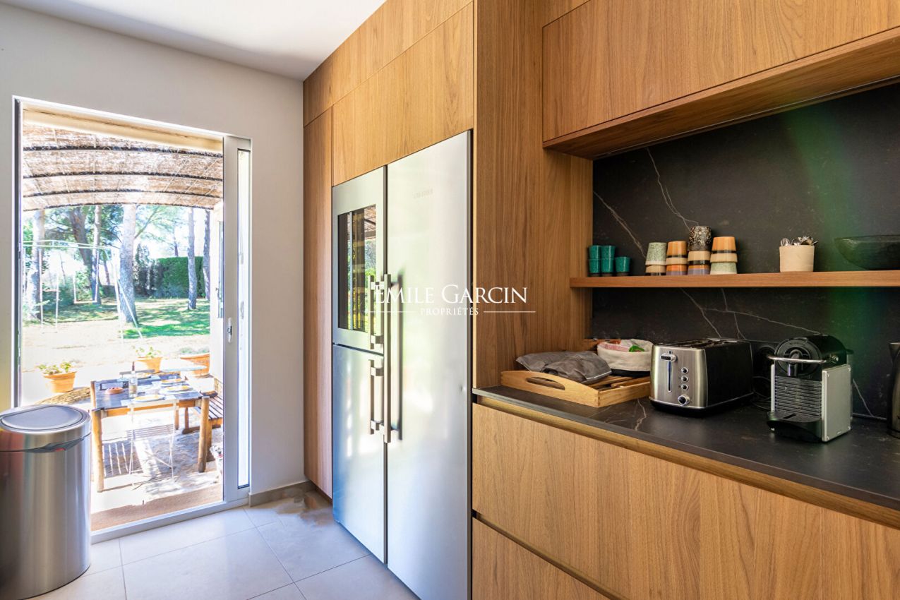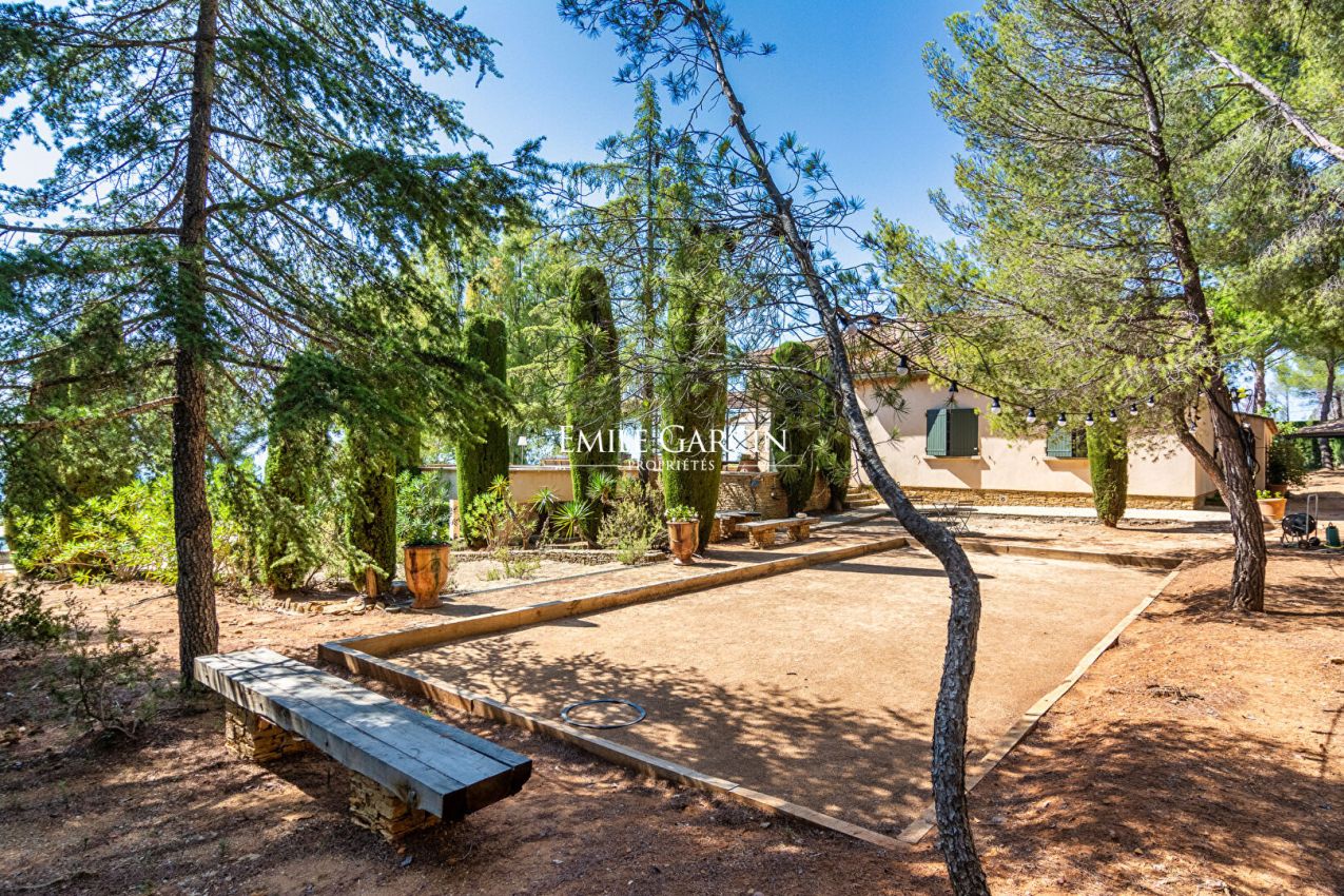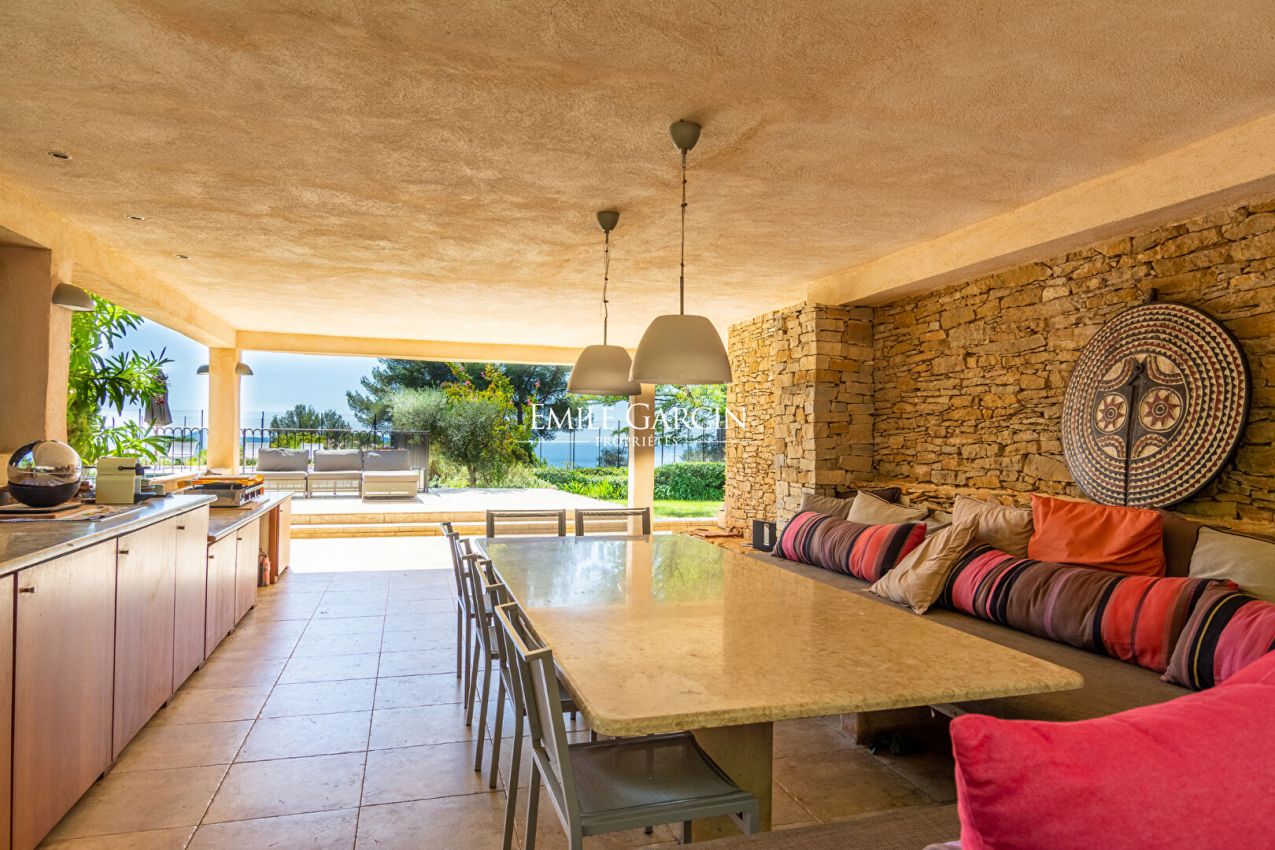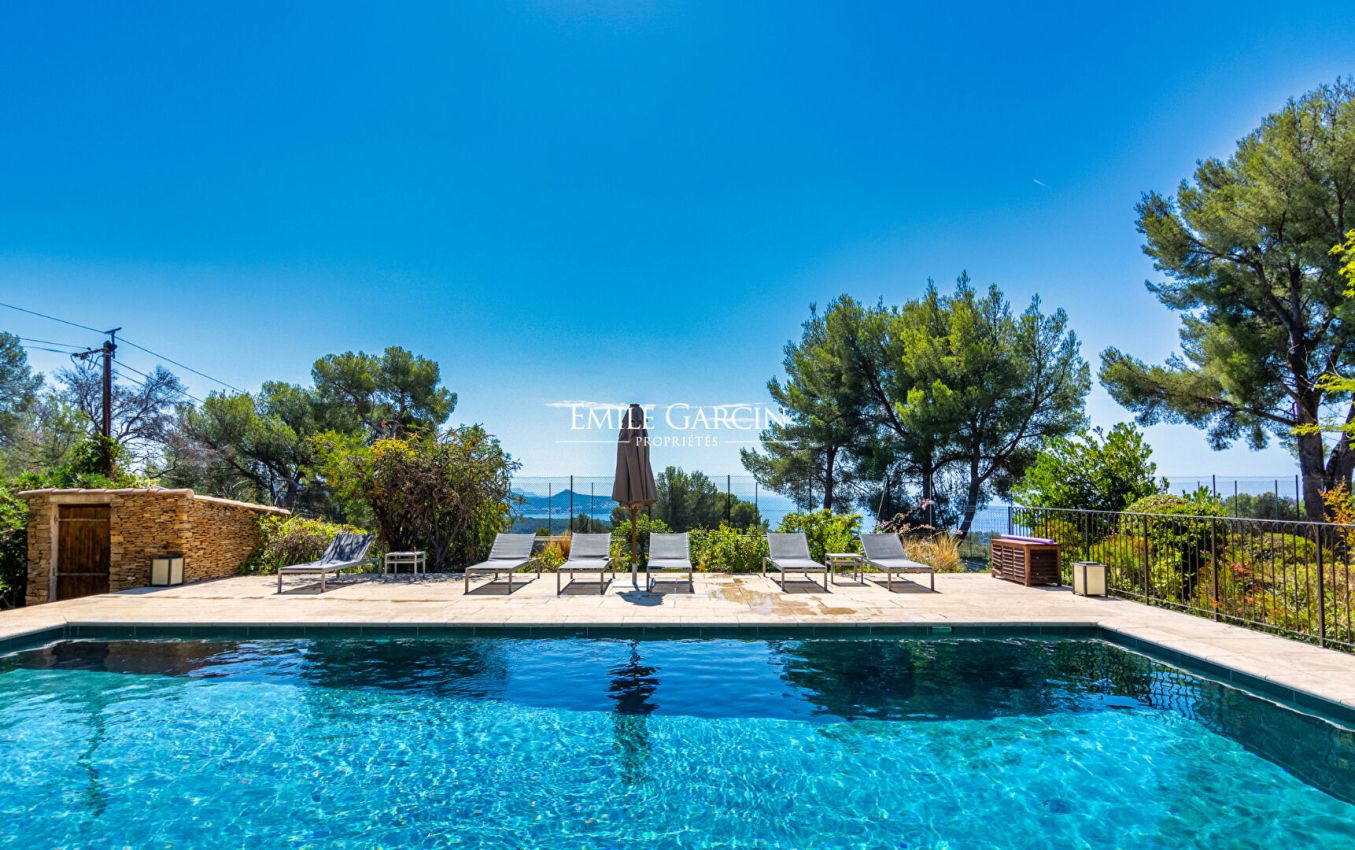 Nestled in a pine forest on the hills between La Ciotat and Saint-Cyr-sur-Mer, Villa Cytharis majestically overlooks the bay and offers breathtaking panoramic views of the Mediterranean. This family-run property, perfectly designed for peaceful stays, charms with its tranquil atmosphere and expansive outdoor spaces. A beautiful swimming pool complex, complete with a fully equipped pool house, invites relaxation and conviviality. The villa comprises seven air-conditioned double bedrooms, one single bedroom, and six bathrooms, comfortably accommodating up to 15 guests. The leisure facilities match the setting: a heated swimming pool, tennis court, pétanque court, and a pool house with a summer kitchen and cold storage. On-site caretakers ensure a convenient and worry-free stay.