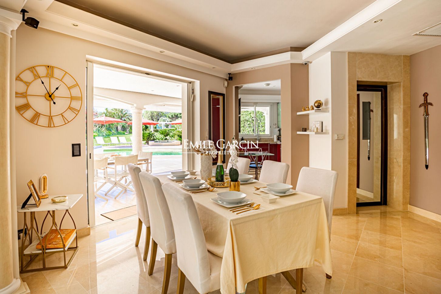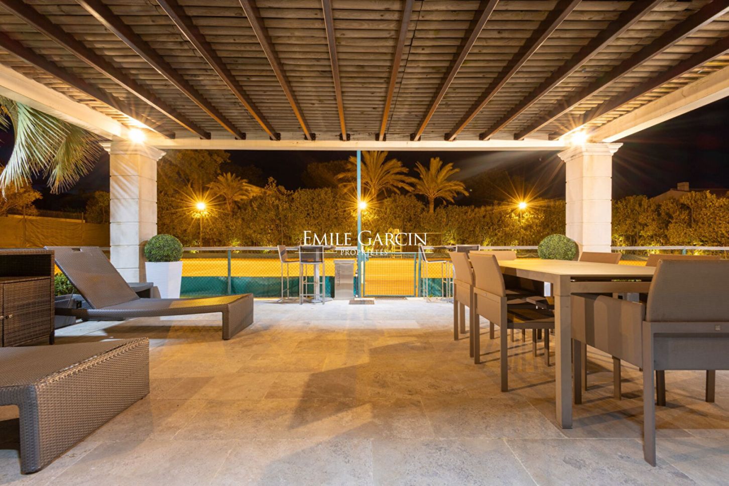 Located in a private and secure domain, property of 320 m2, offering very good services: Hammam, sauna, cinema room, gym. 4 bedrooms, 4 bathrooms Heated and secure swimming pool. Outdoor jacuzzi. Tennis. Ping-pong. A few minutes from the beach. Registration number: 83068 001726 JL