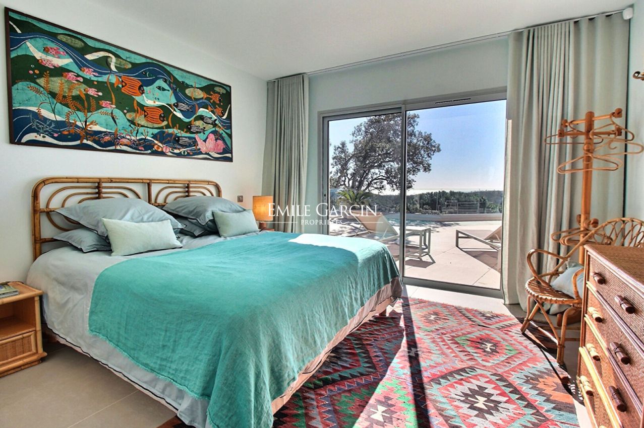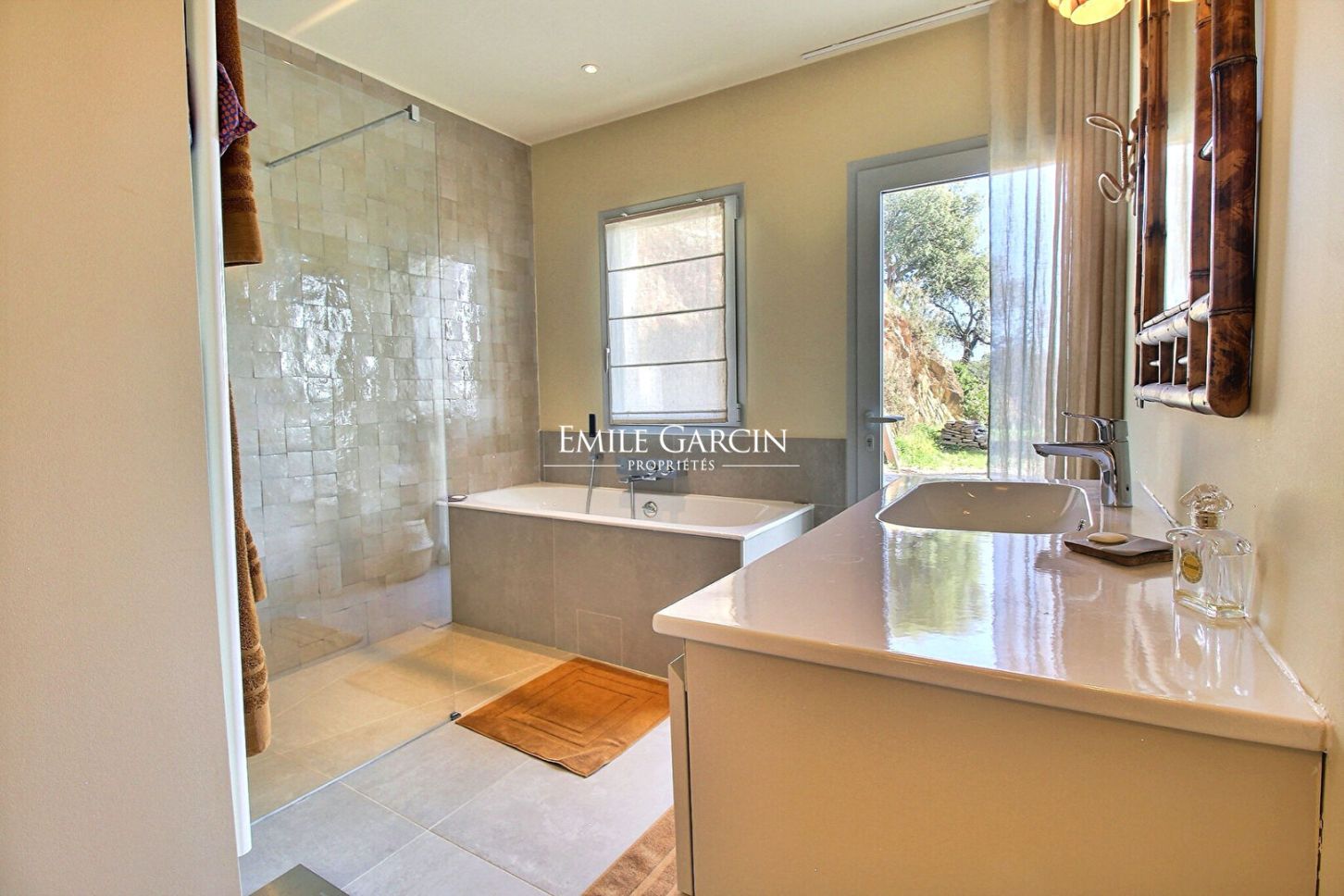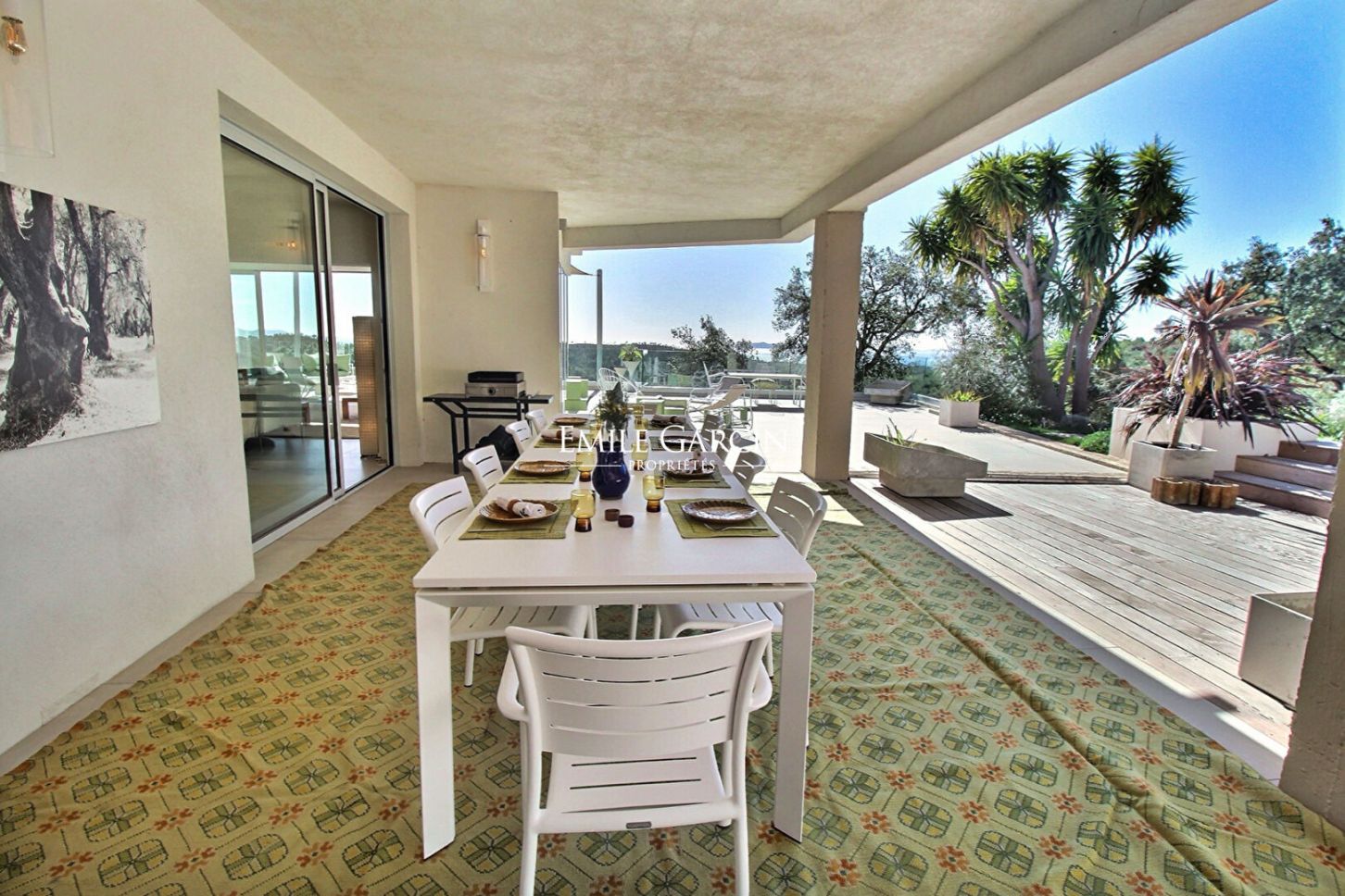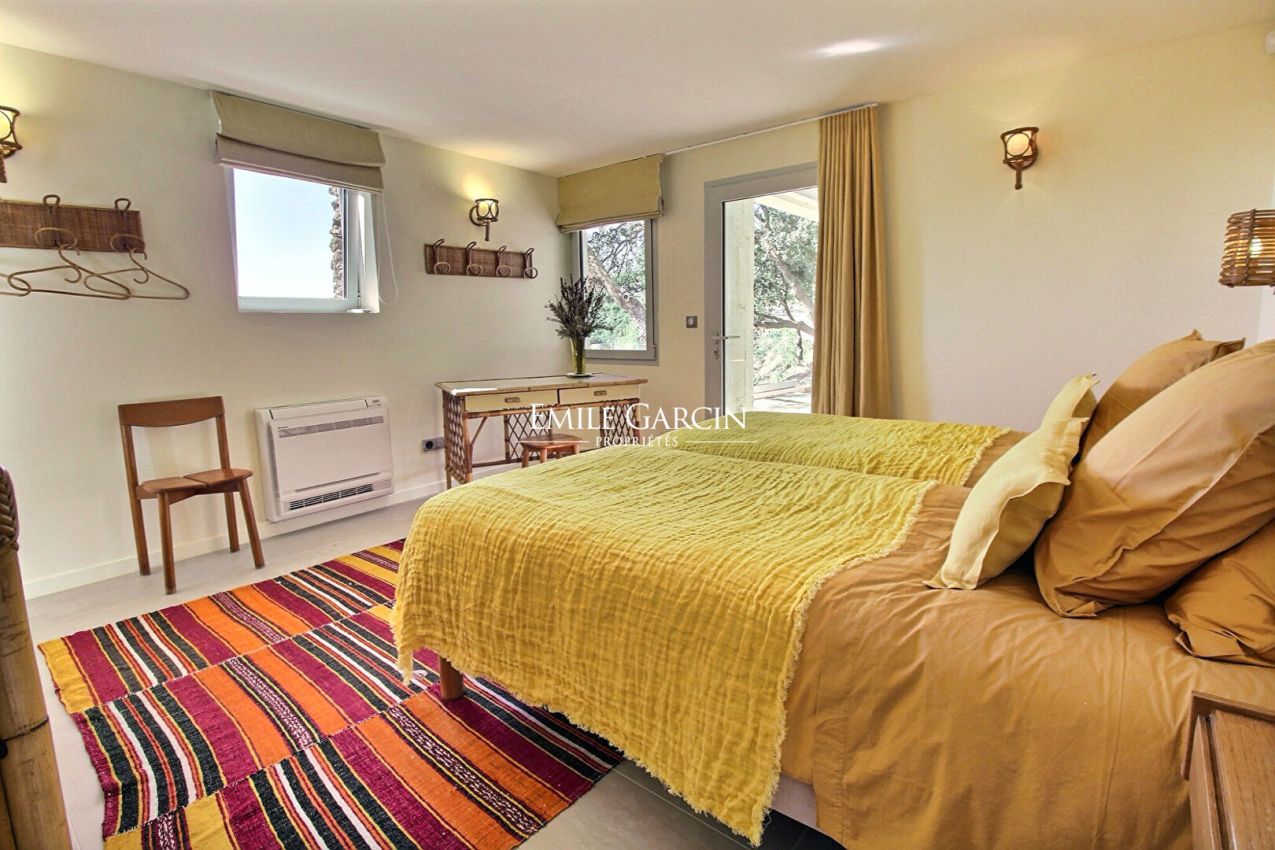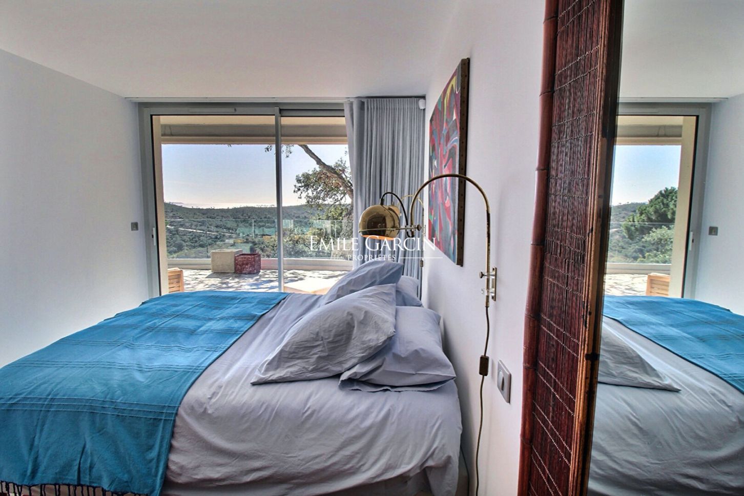 Luxurious contemporary villa nestled on the hillside between scrubland and olive trees, in the heart of a nature reserve. Villa Léoube is a true haven of peace that offers you serenity and absolute calm, ideally located between Provence and the Côte d'Azur. The villa has a breathtaking view of the islands of Porquerolles and Port-Cros. Villa with 7 air-conditioned bedrooms, 7 bathrooms, capacity 14 people maximum. Heated swimming pool, large terrace, sea view, quiet.