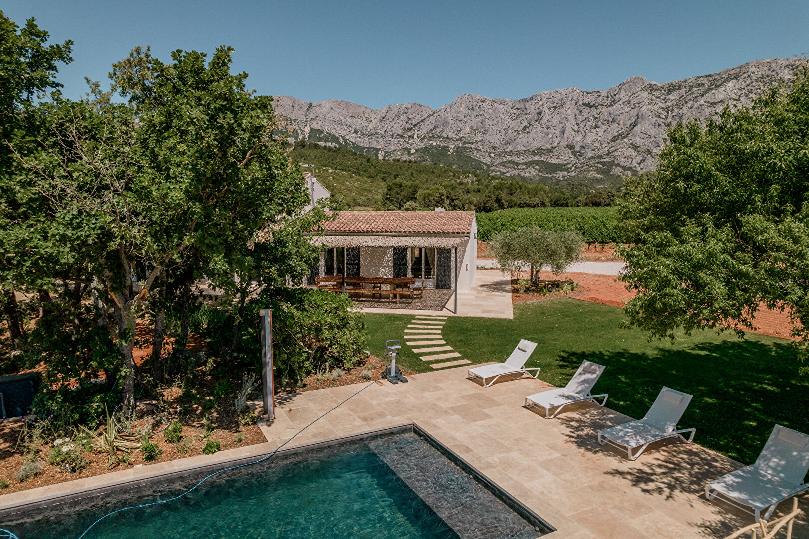 Nestled in the heart of a 70-hectare family vineyard, Villa des Gardis offers an exceptional natural setting facing the Sainte-Victoire mountain. Located a 5-minute drive from the village of Puyloubier and 20 minutes from Aix-en-Provence, the property accommodates 6 people in 3 bedrooms and 2 bathrooms, with 2 additional bedrooms available to increase the capacity to 10. A heated swimming pool, private sauna, private jacuzzi, and pétanque court complete this ideal location for a peaceful stay amidst vineyards and nature.