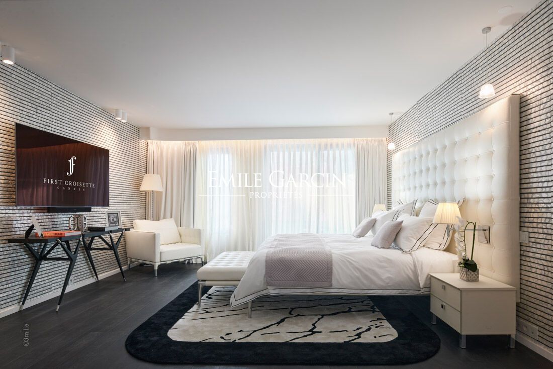 Appartement d'exception situé dans la résidence la plus prestigieuse de la Croisette, en face du palais des festivals. Environ 400m2 avec 6 chambres et 6 salles de bains et une grande terrasse de 40m2.
