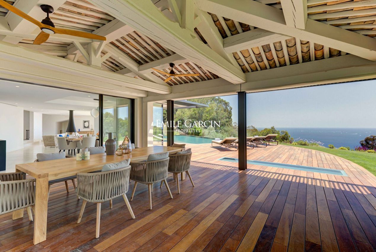 Propriété contemporaine de luxe avec vue mer à couper le souffle. Prestations haut de gamme et espace bien-être Nichée dans un cadre préservé sur la Côte d'Azur, cette propriété contemporaine exceptionnelle offre une vue mer incomparable et des prestations de luxe inégalées. D'une surface d'environ 600 m², cette demeure unique se compose de 6 chambres doubles en suite, dont un appartement indépendant, assurant confort et intimité pour chaque invité.