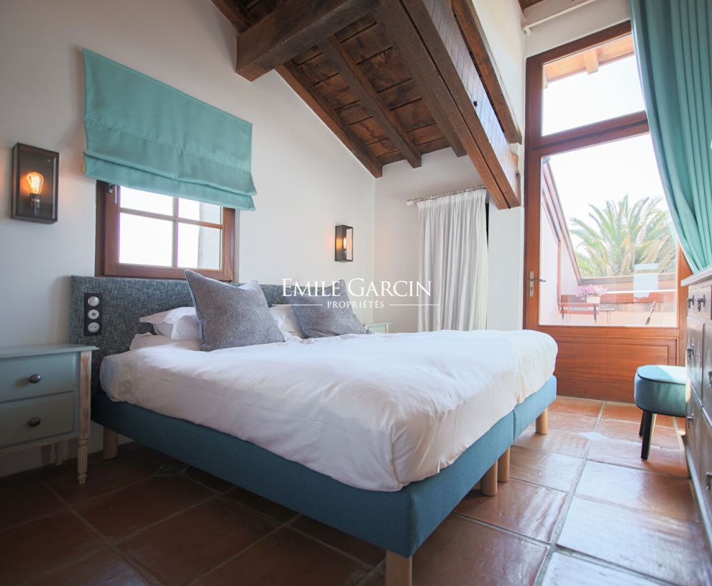 Nichée sur un terrain de 3,5 hectares offrant des vues sur l'océan et les Pyrénées, cette magnifique demeure est l'endroit idéal pour un séjour au calme et en famille. Vous trouverez au rez-de-chaussée une grande pièce à vivre, une belle cuisine, 3 chambres avec chacune leur salle de bain ou salle d'eau. L'étage offre 5 chambres supplémentaires, dont 2 avec salle de bain et 3 avec salle d'eau. A l'extérieur, différentes terrasses équipées de tout le mobilier de jardin nécessaire, un sauna et une belle piscine de 16 x 6 m. Climatisation dans toute la maison.