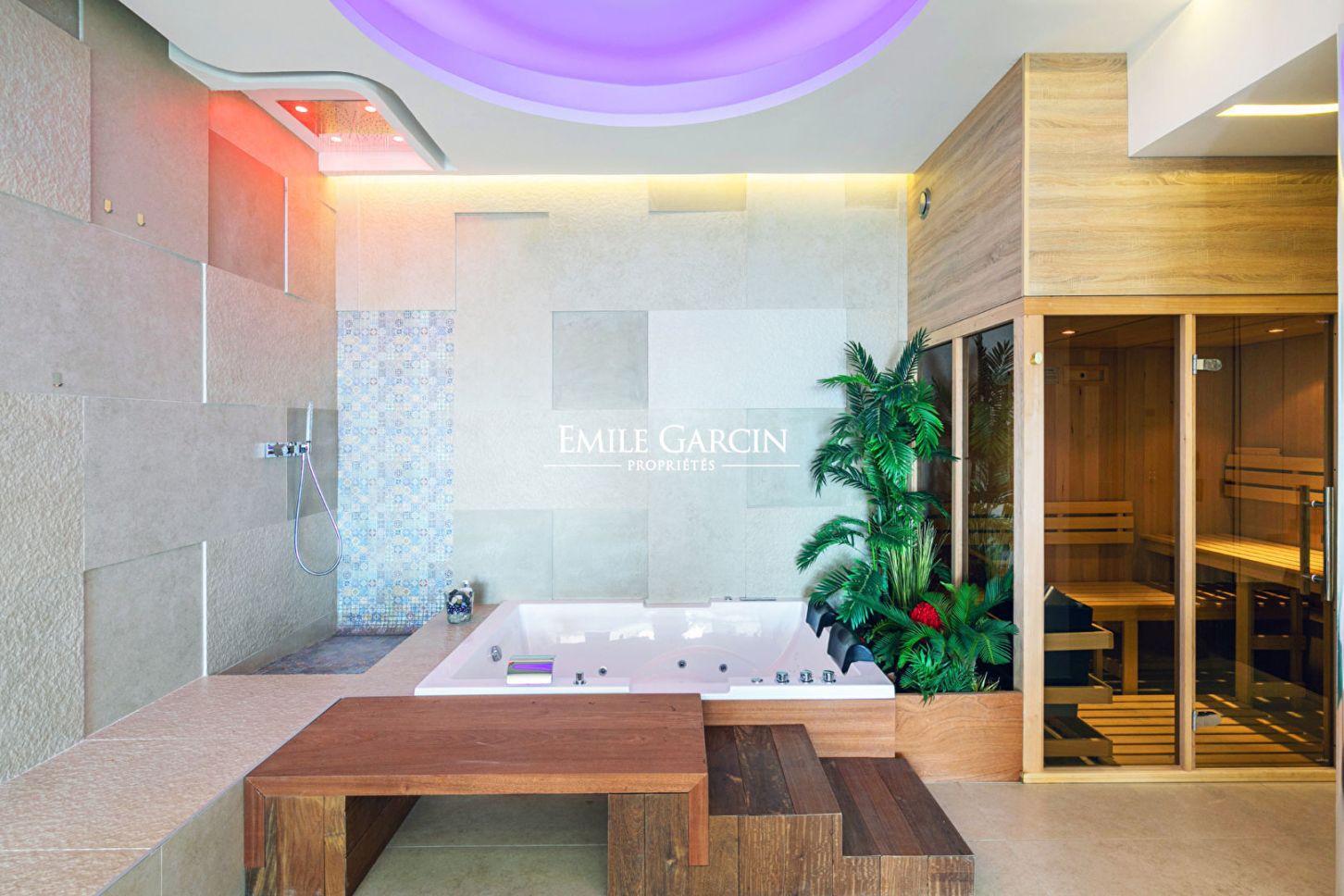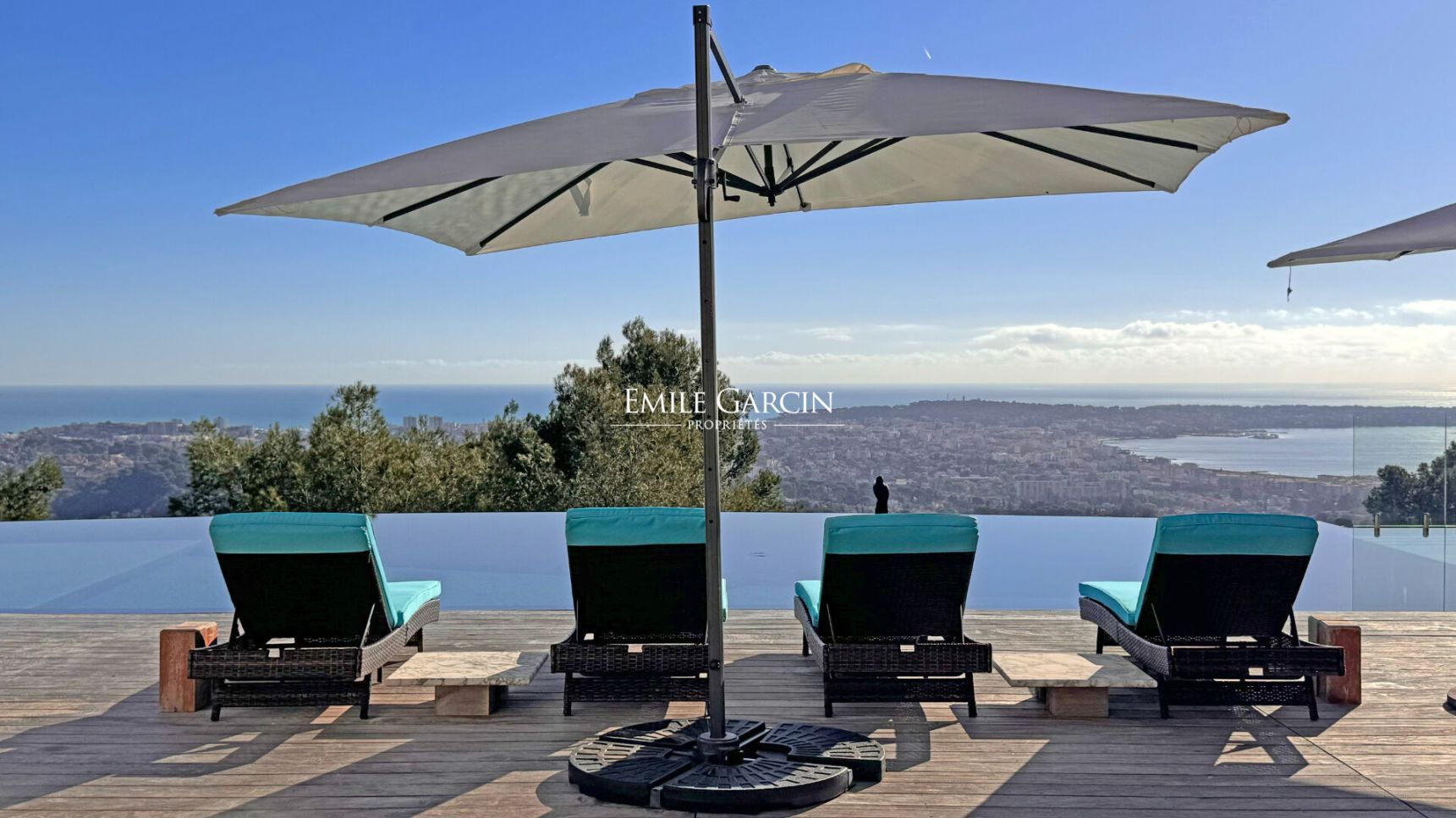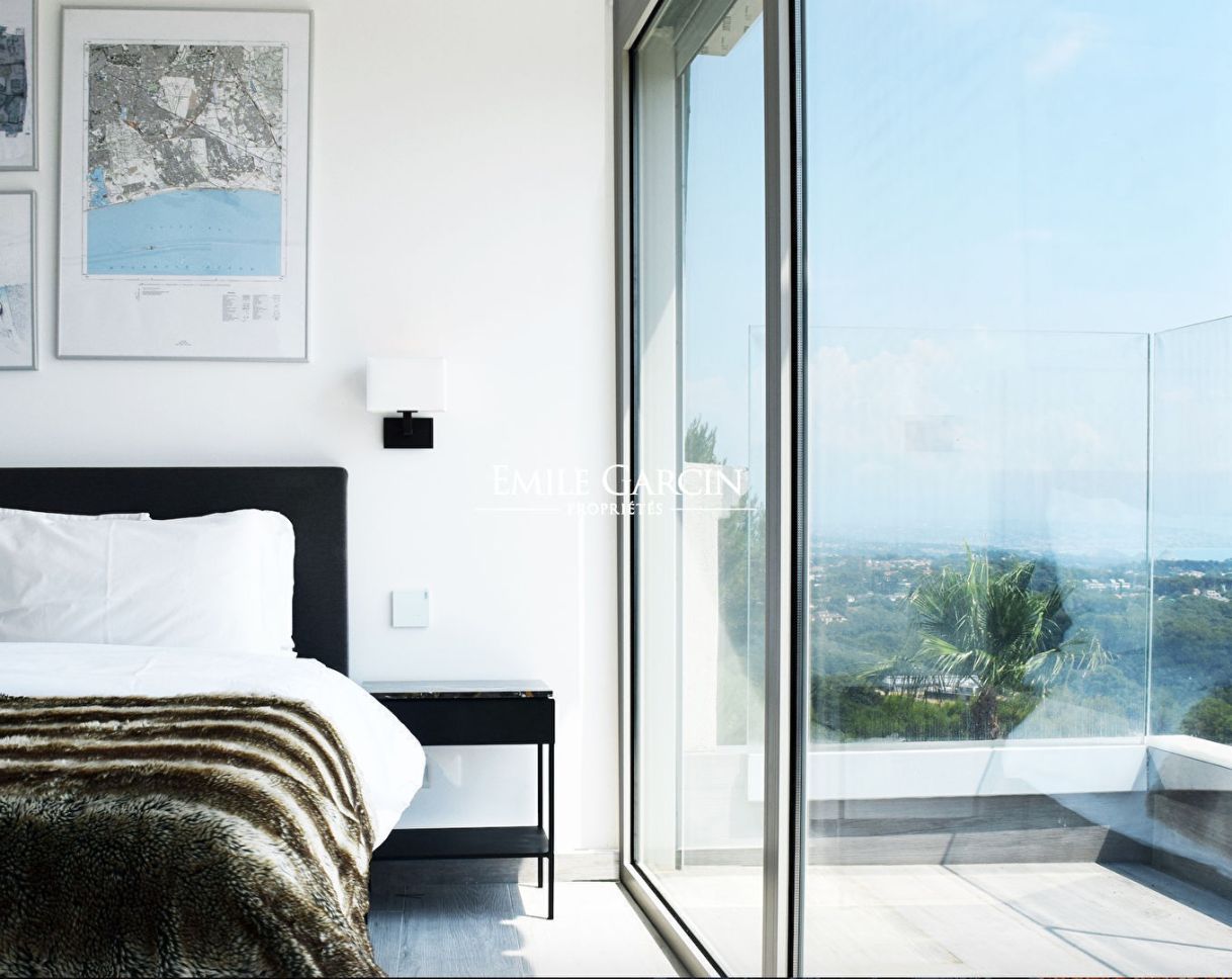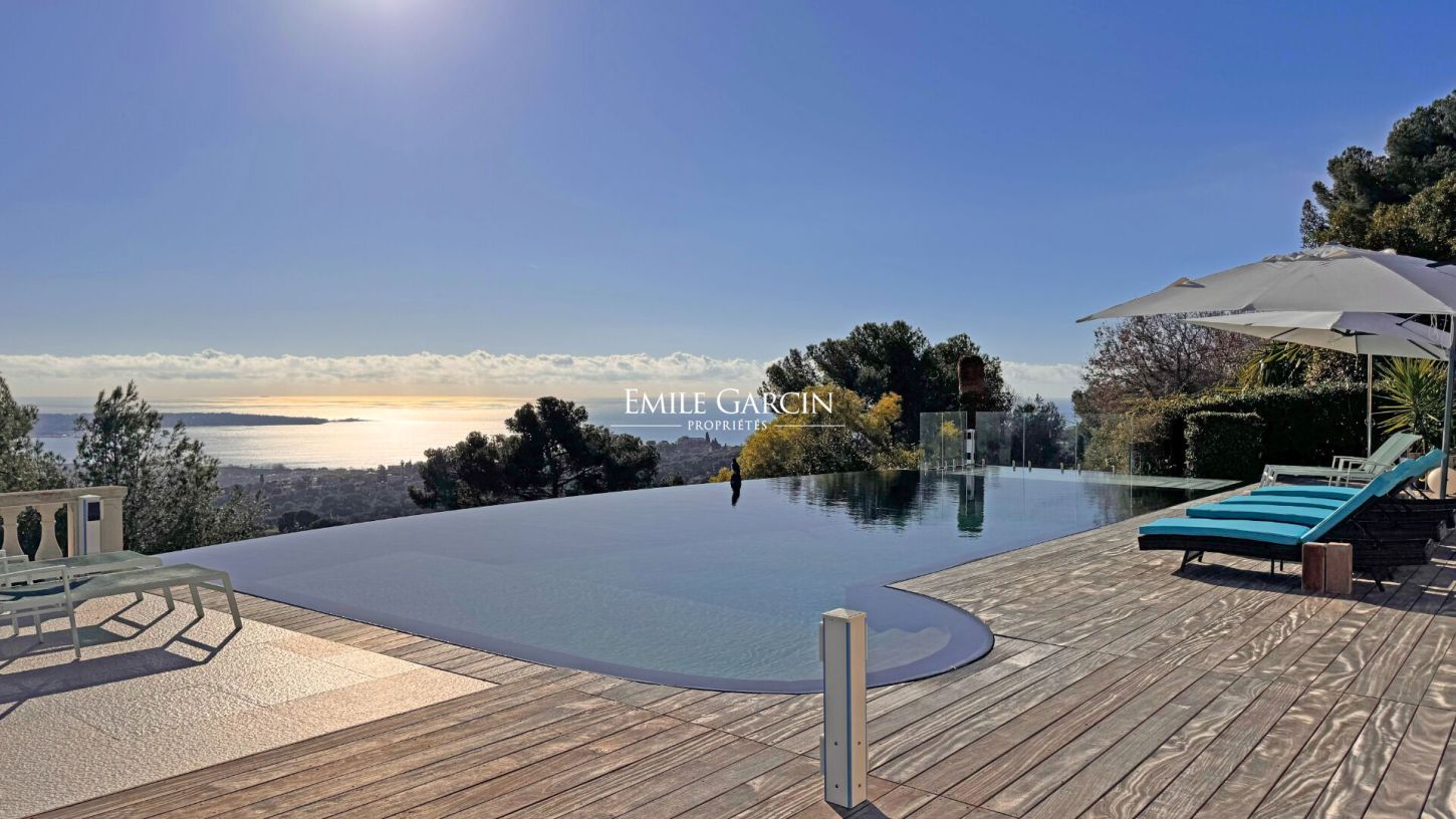 A louer, belle maison entièrement rénovée avec soin. De spacieux espaces idéaux pour une grande famille. De nombreux coins d'extérieur de relaxation offrant des vues spectaculaires sur la mer et sur le célèbre Cap d'Antibes. Cette propriété dispose de 8 chambres avec salles de bains, le tout pouvant accueillir jusqu'à 16 personnes confortablement. Grande piscine à débordement pouvant être chauffée, spa à l'intérieur de la maison avec Jacuzzi chromothérapie et sauna , salle de fitness, table de billard et un sound system intérieur et extérieur.