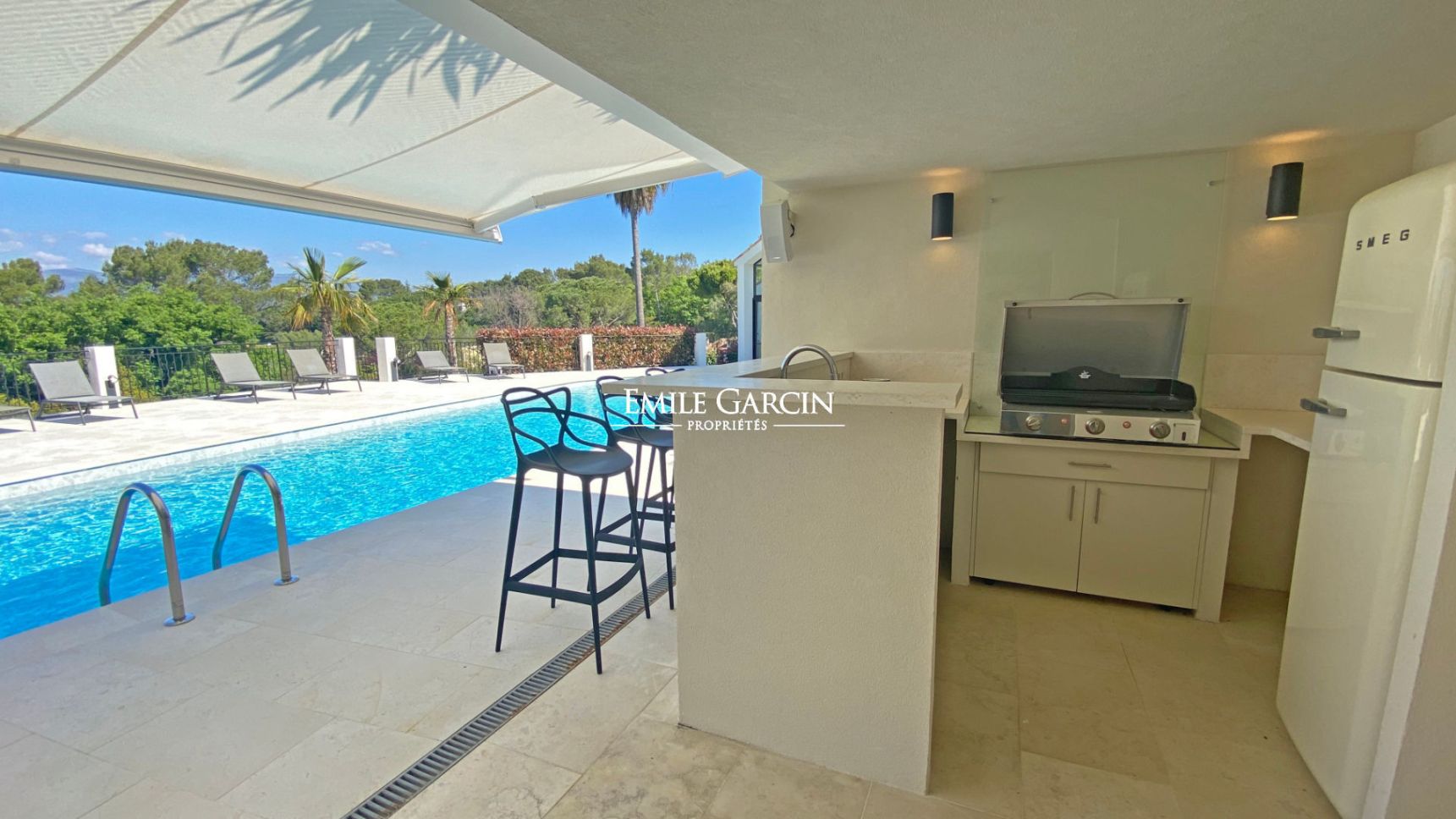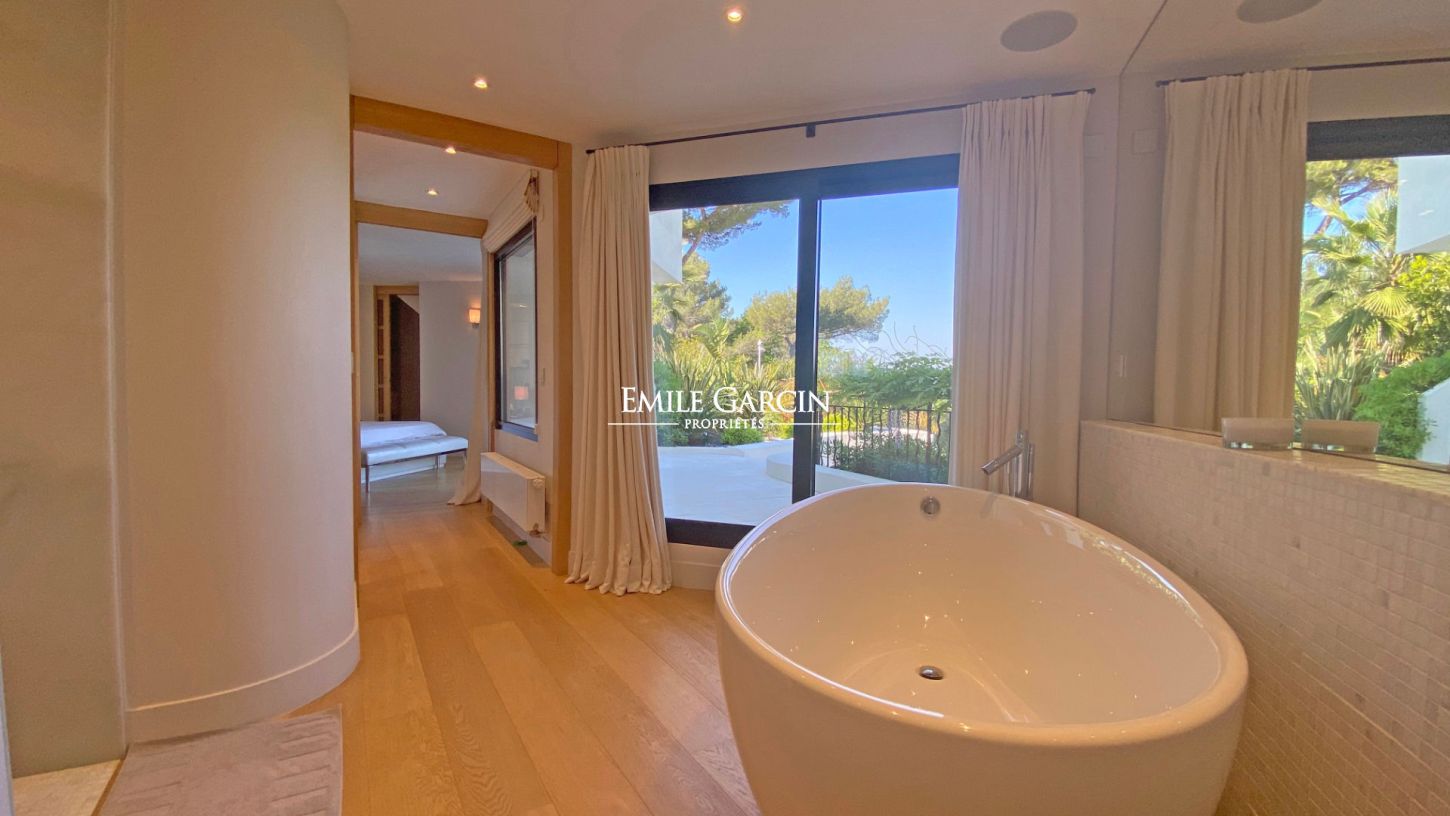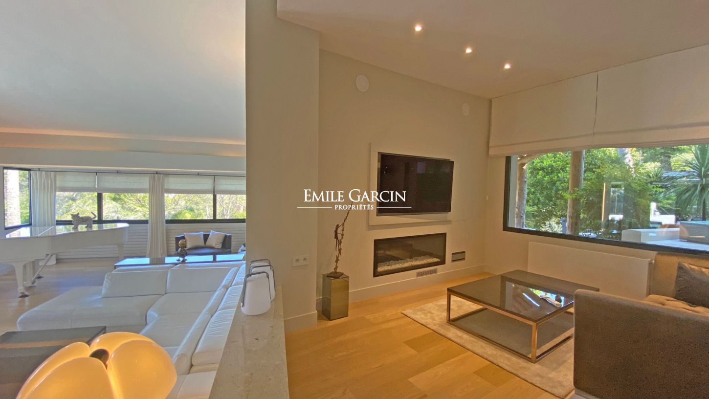 Entièrement rénovée avec des prestations haut de gamme, la villa séduit par ses volumes généreux et sa luminosité. Le vaste salon, ouvert sur l'extérieur, s'ouvre harmonieusement sur la piscine chauffée et les espaces de détente, parfaitement aménagés pour profiter du climat azuréen. Le jardin paysager, soigneusement entretenu, offre plusieurs coins ombragés, un jacuzzi, ainsi qu'un espace barbecue convivial, idéal pour les séjours en famille ou entre amis.