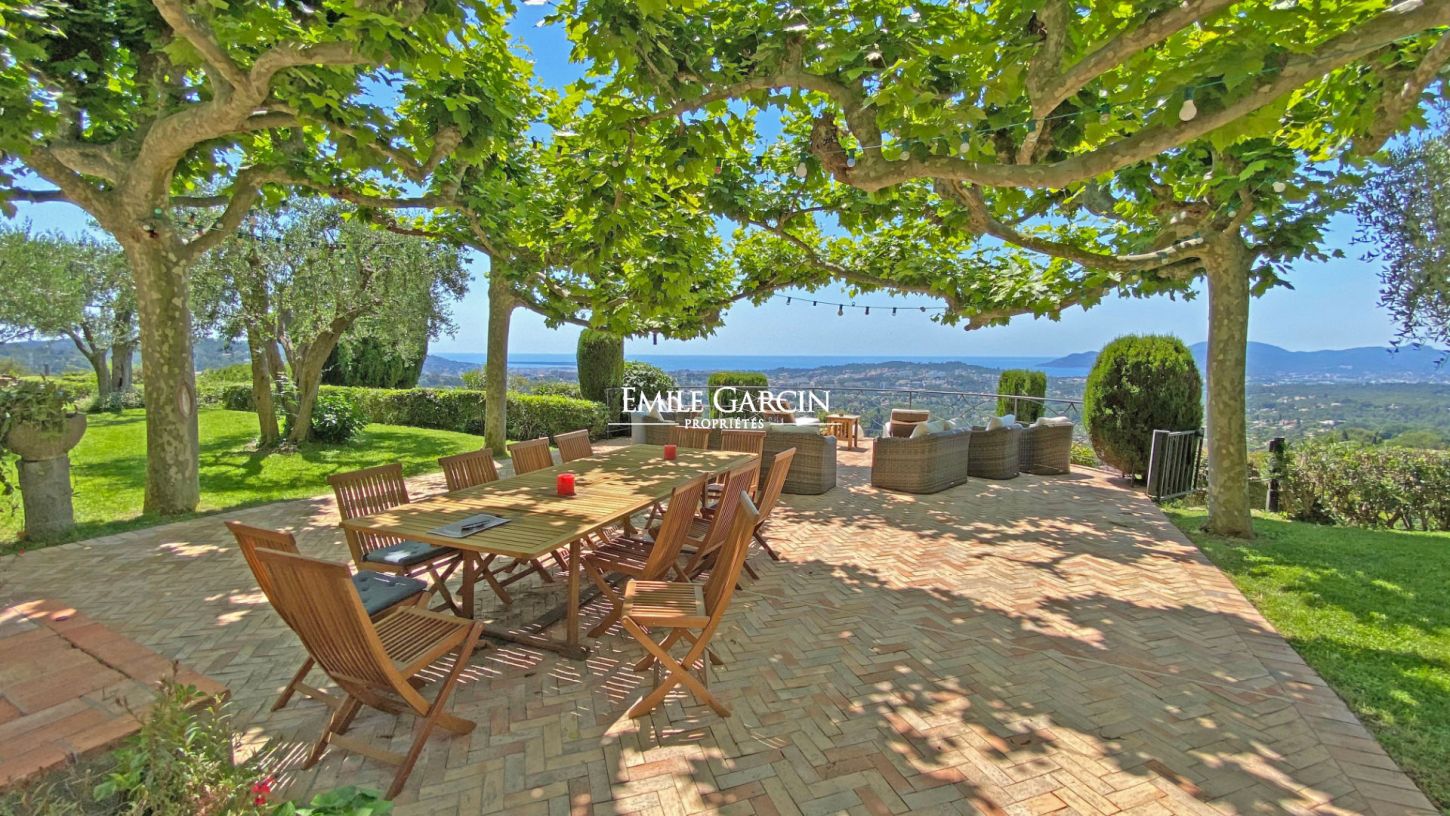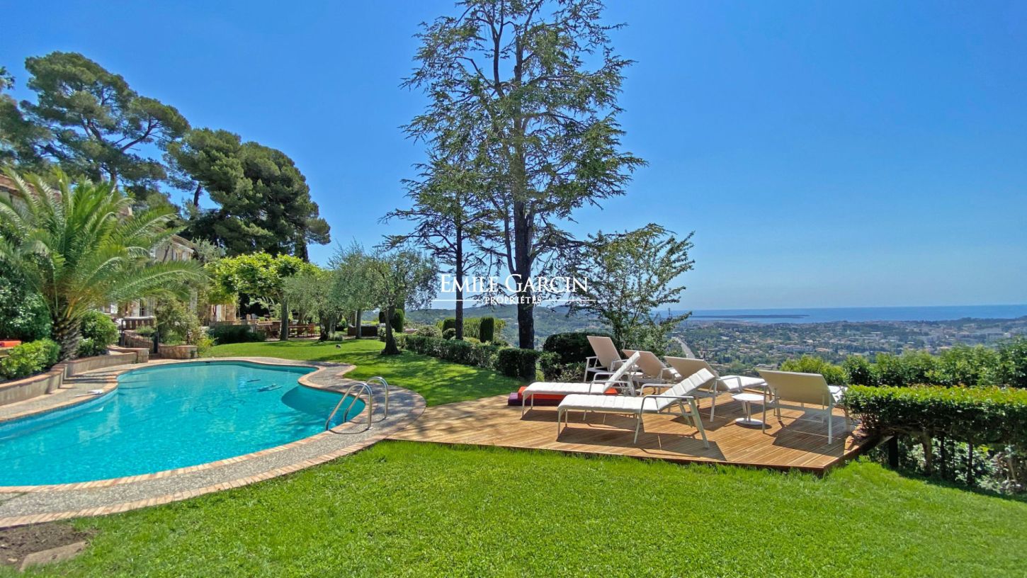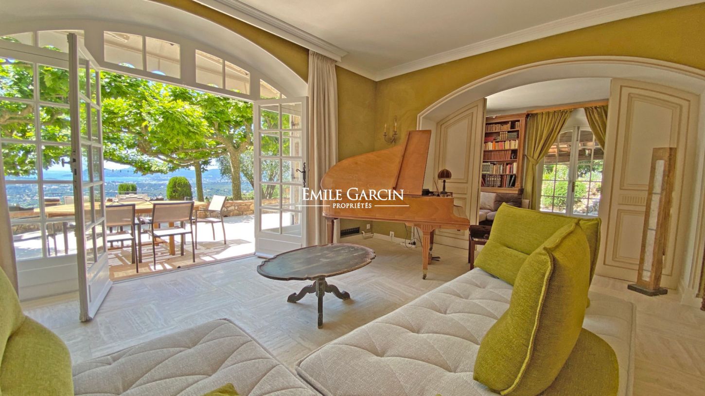 Découvrez cette maison unique située au coeur de Mougins Village, offrant un cadre de vie exceptionnel avec une superficie habitable de 420 m² et un vaste jardin de 7000 m². Profitez d'une vue mer à 180 degrés sur la splendide Côte d'Azur et les collines environnantes, créant un panorama à couper le souffle.