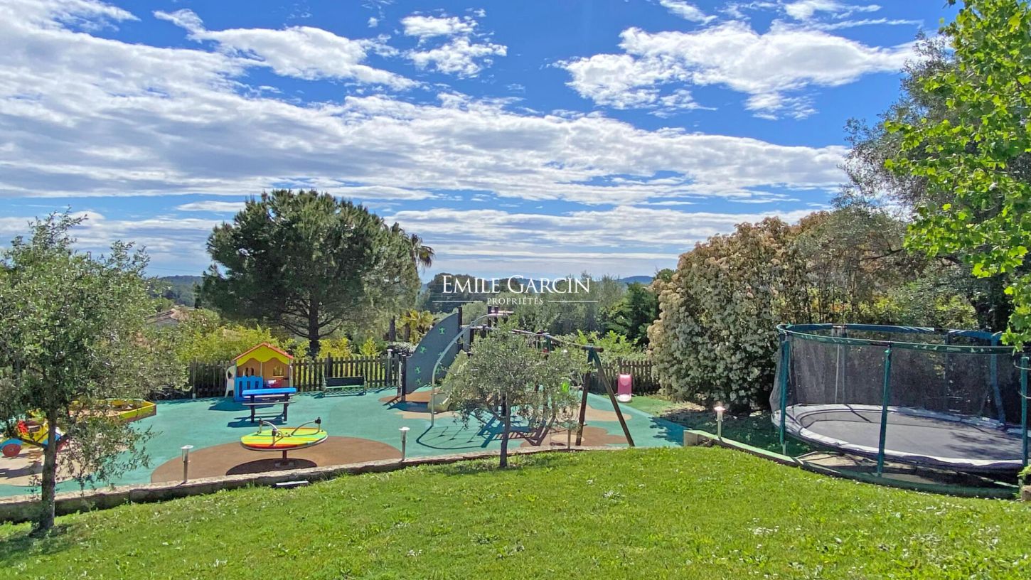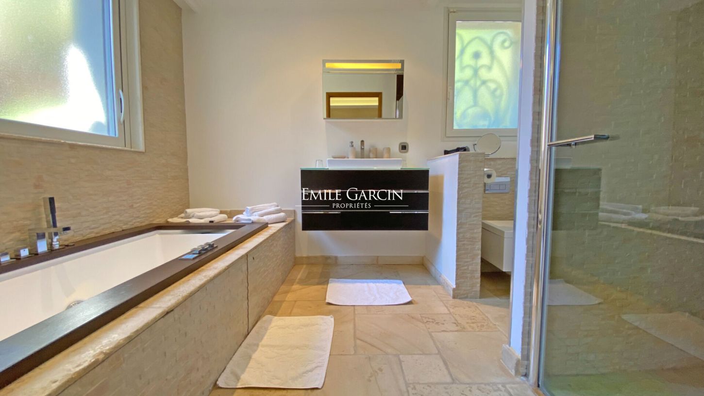 Belle propriété située dans un quartier au calme et sécurisé de Mougins. La maison de 780m2 dispose de 6 chambres doubles en suite sur un parc de 7000m2. De nombreux espaces de détente viendront combler vos envies: espace pour enfants, salle de cinéma, boite de nuit privée, salle de fitness, un grand pool house entièrement équipé avec un baby foot et de nombreux transats et parasols. La grande piscine est accompagnée d'un jacuzzi et d'une fontaine.
