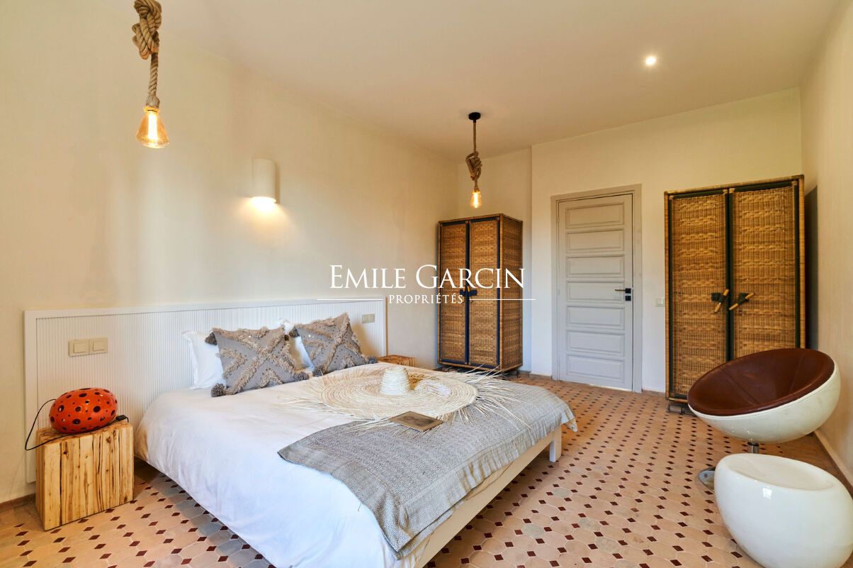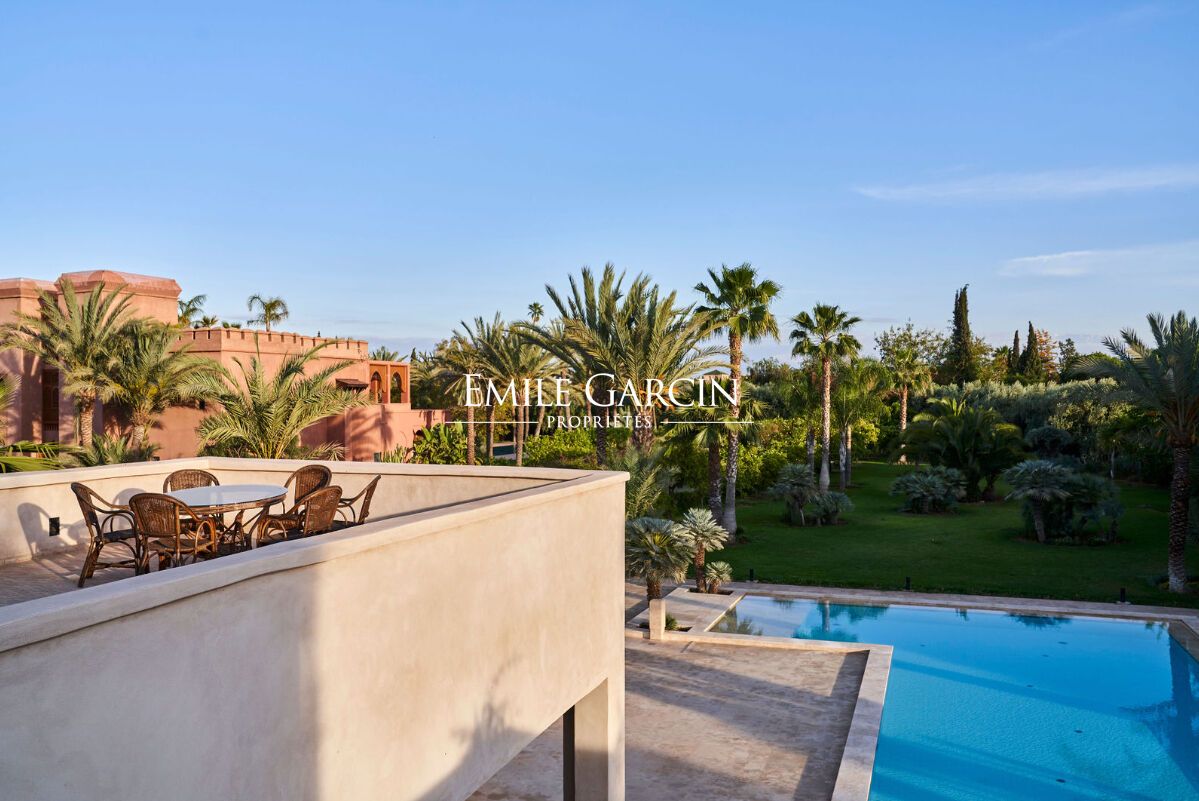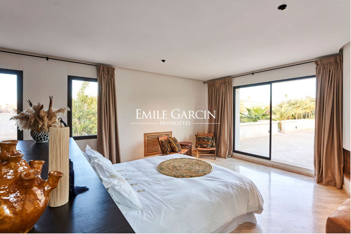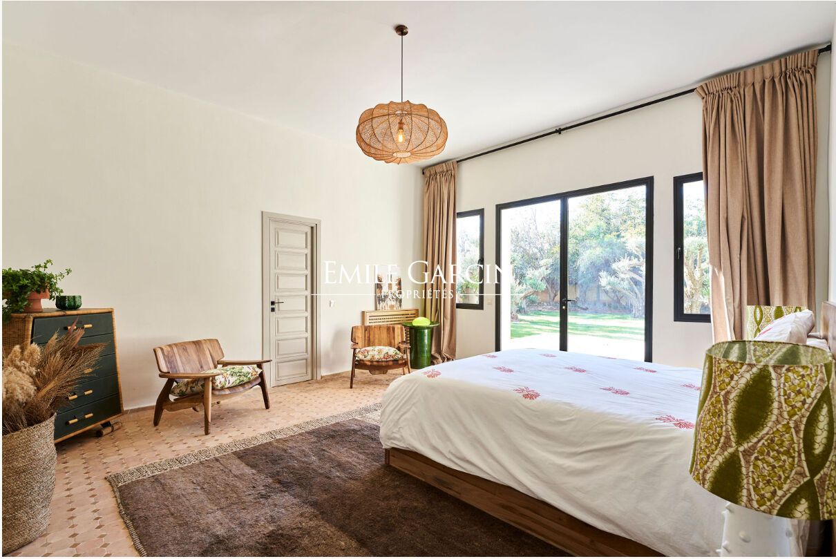 Superbe villa au charme fou idéalement située à 15mn de Marrakech. Meublée et décorée avec élégance, cette propriété de 7 chambres / 6 salles de bain, est la garantie d'un séjour tout confort. Grand triple séjour avec cheminée centrale, agrémenté d'un très beau jardin intérieur et jouissant d'une belle luminosité grâce à une grande verrière.