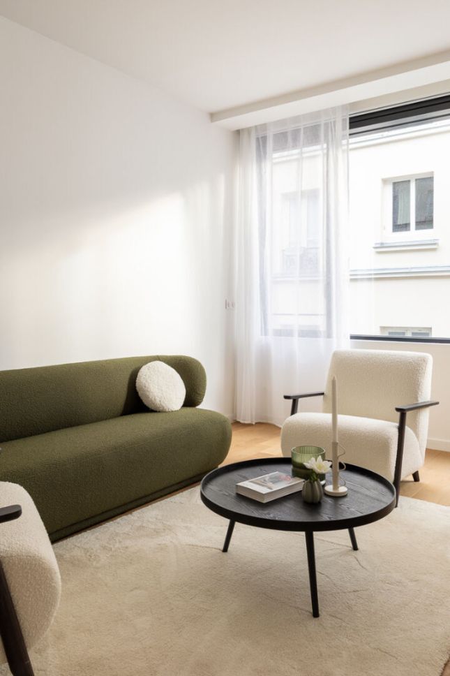 Dans le cadre d'une rénovation de grande qualité, rare dans le centre Paris, idéalement situé, à proximité de la place des Vosges, de la Seine et de Bastille, dans un quartier historique, calme et proche des commerçants, un appartement au 4eme étage avec ascenseur sur cour pavée et arborée.