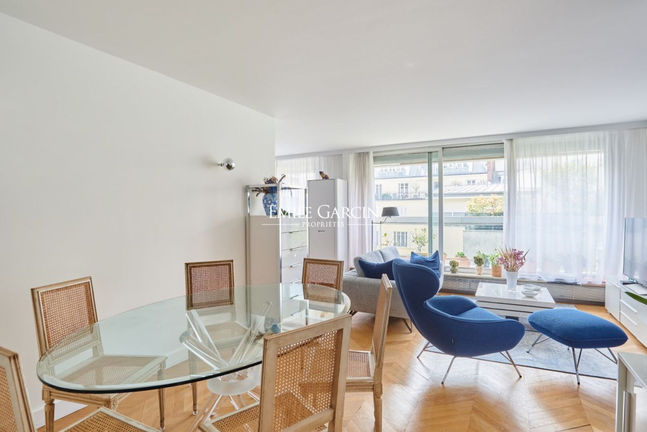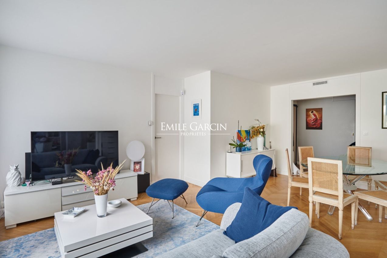 Saint Dominique - Rue Cler. Dans un bel immeuble récent, au 3ème étage avec ascenseur, un appartement de 83,42 m² loi Carrez en parfait état avec une grande clarté, comprenant un salon, une salle à manger (ou seconde chambre), une chambre de maitre, une salle de bains, une salle d'eau, nombreux rangements, toilettes séparés. Un grand balcon au calme. Une cave et parking complètent ce bien.