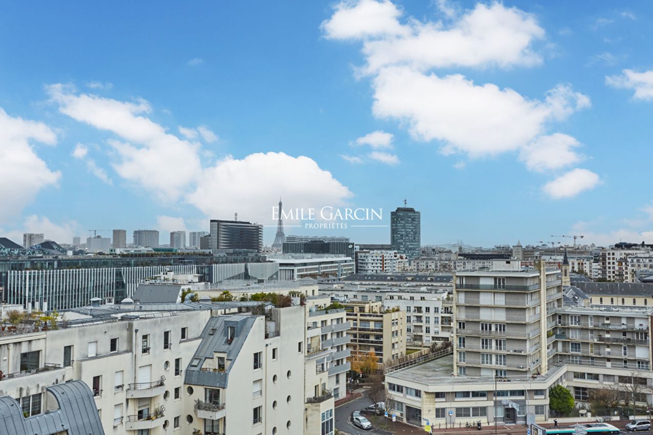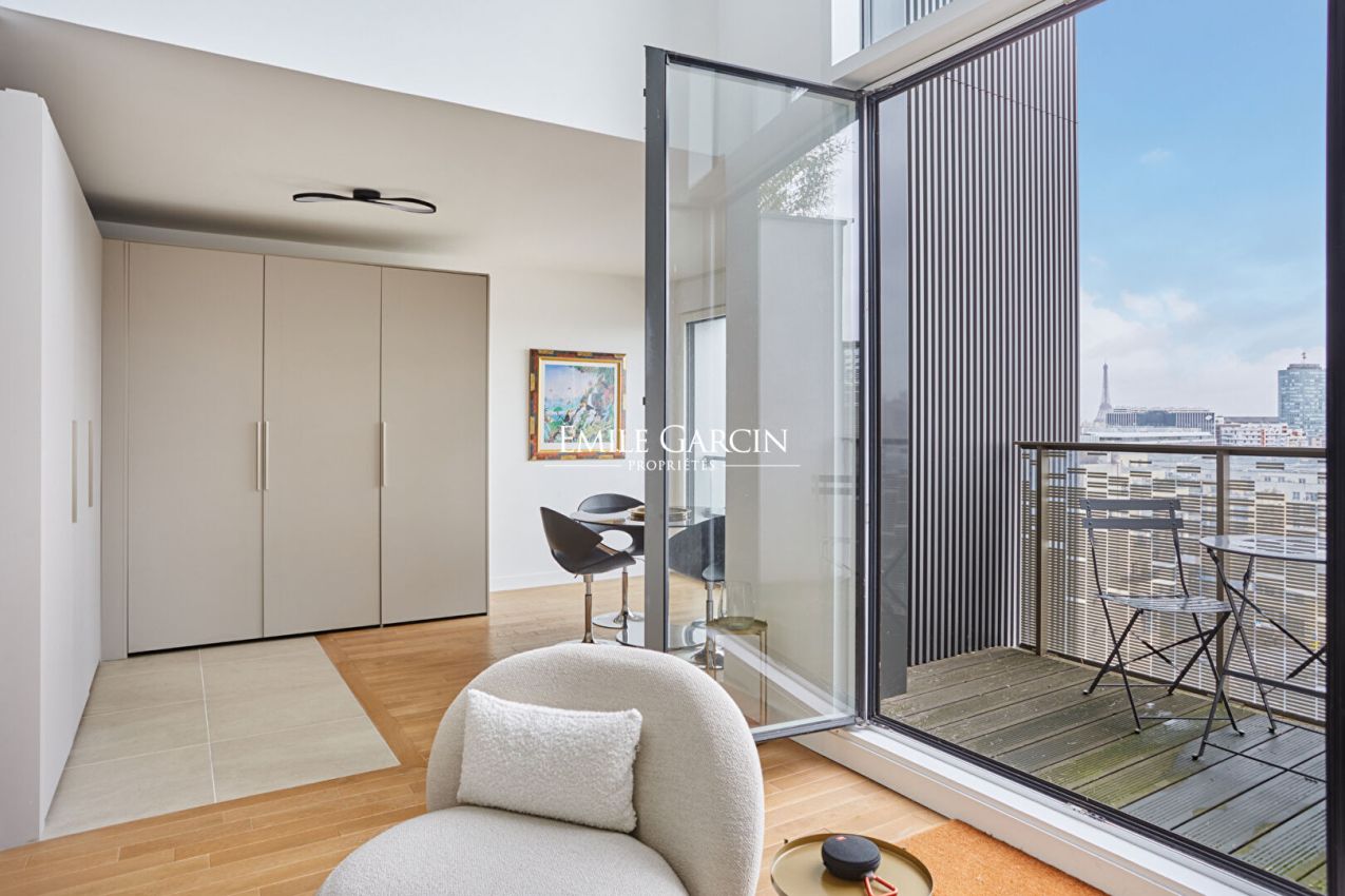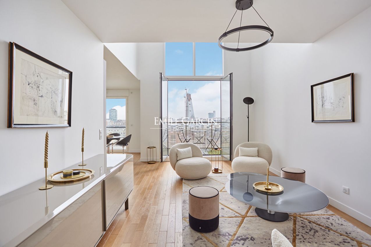 Issy Coeur de Ville - Au sein d'un ensemble résidentiel de grand standing livré en 2022, duplex de 84,10 m² (loi Carrez) situé aux deux derniers niveaux, accessibles par ascenseur, avec vue plein ciel dégagée sur Paris, la tour Triangle et la tour Eiffel.