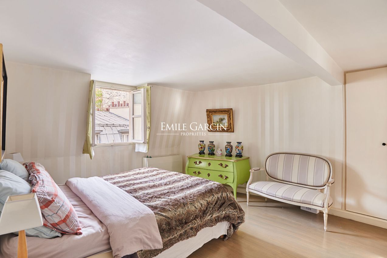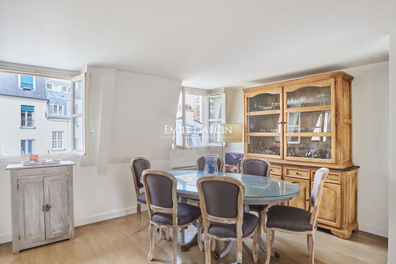 A deux pas du Panthéon, au deux derniers étages par ascenseur d'un immeuble de 1900, un appartement en duplex d'une surface au sol de 143,86 m² (116,69 m² loi Carrez), avec des vues dégagées sur rues et muraille de Philippe Auguste sur jardin. L'intérieur charmant, baigné de lumière, traversant, un spacieux séjour (hauteur sous plafond 4,20 m) orienté Nord/Sud, plan optimal.