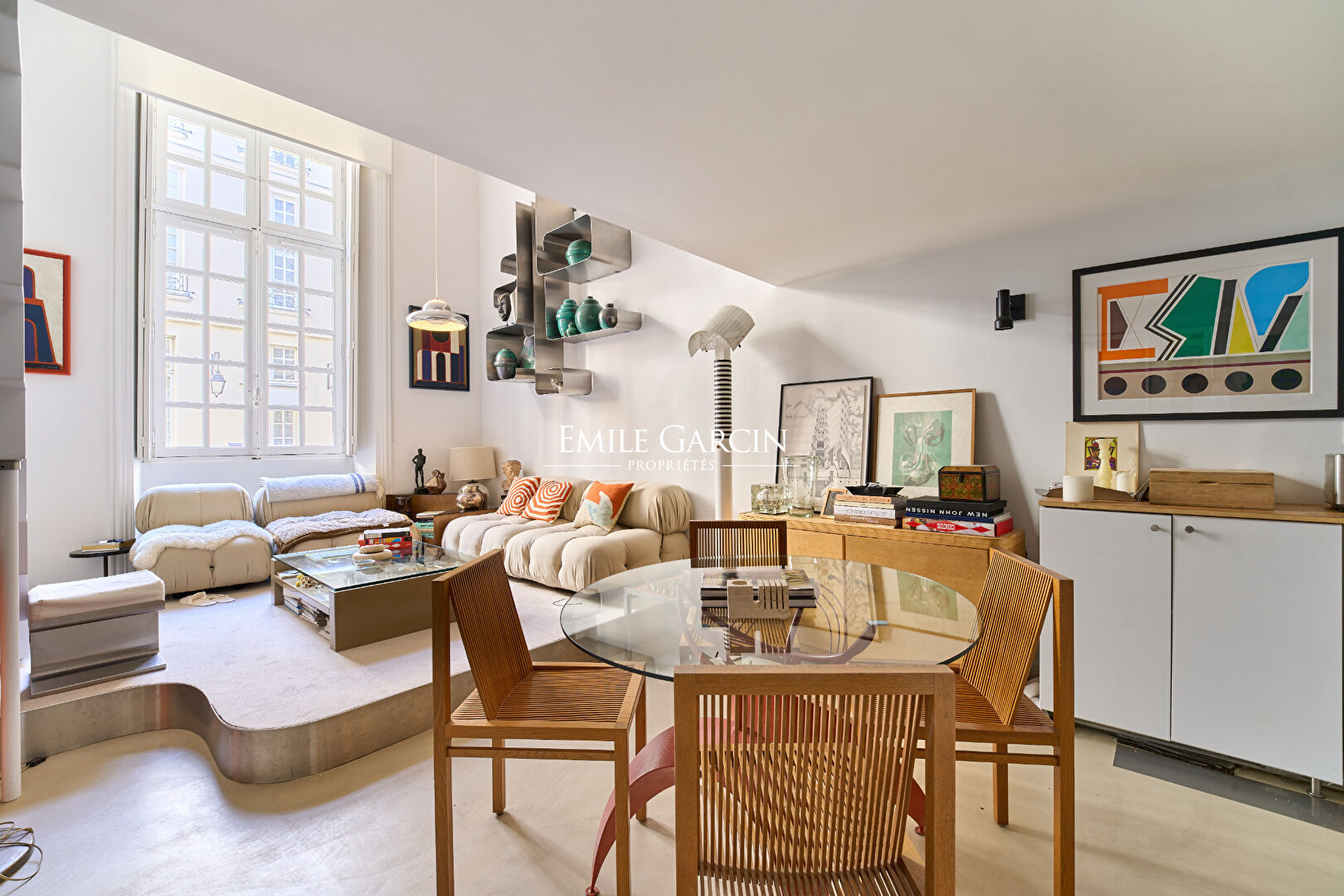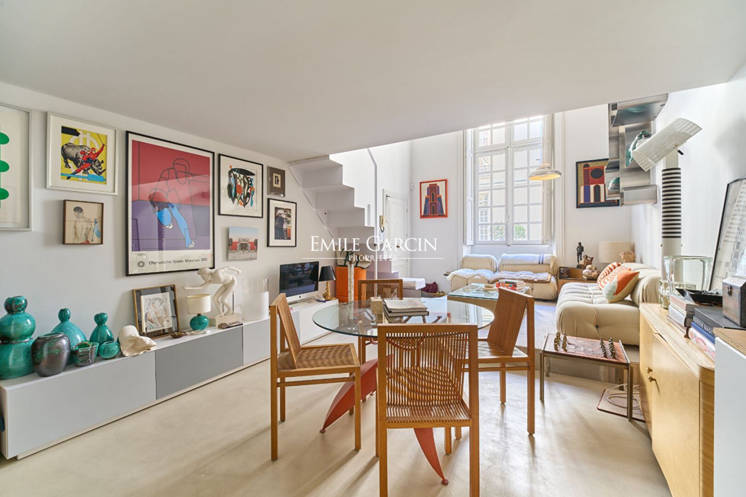 En exclusivité, dans l'élégant Hôtel particulier du XVIIIe, un appartement en parfait état de 45.39m² loi Carrez. Situé au rez-de-chaussée sur une belle cour d'honneur par un portail Louis XVI, les étages du bâtiment entièrement rénovés, cet appartement de charme, avec un intérieur dans un univers de courbes et des matériaux de qualités, il se compose d'une belle pièce de vie avec une cuisine ouverte, d'une buanderie avec des rangements, d'une chambre avec dressing à l'étage et d'une salle de bains avec des toilettes. Magnifique copropriété avec toute l'authenticité du Marais. Cet appartement rare, profite d'une belle lumière douce, orienté Sud avec une vue dégagée sur cour, au calme. L'ensemble compose un intérieur où chaque détail trouve sa place, une ambiance raffinée. Cave. Coup de coeur. Idéal pour un pied à terre.