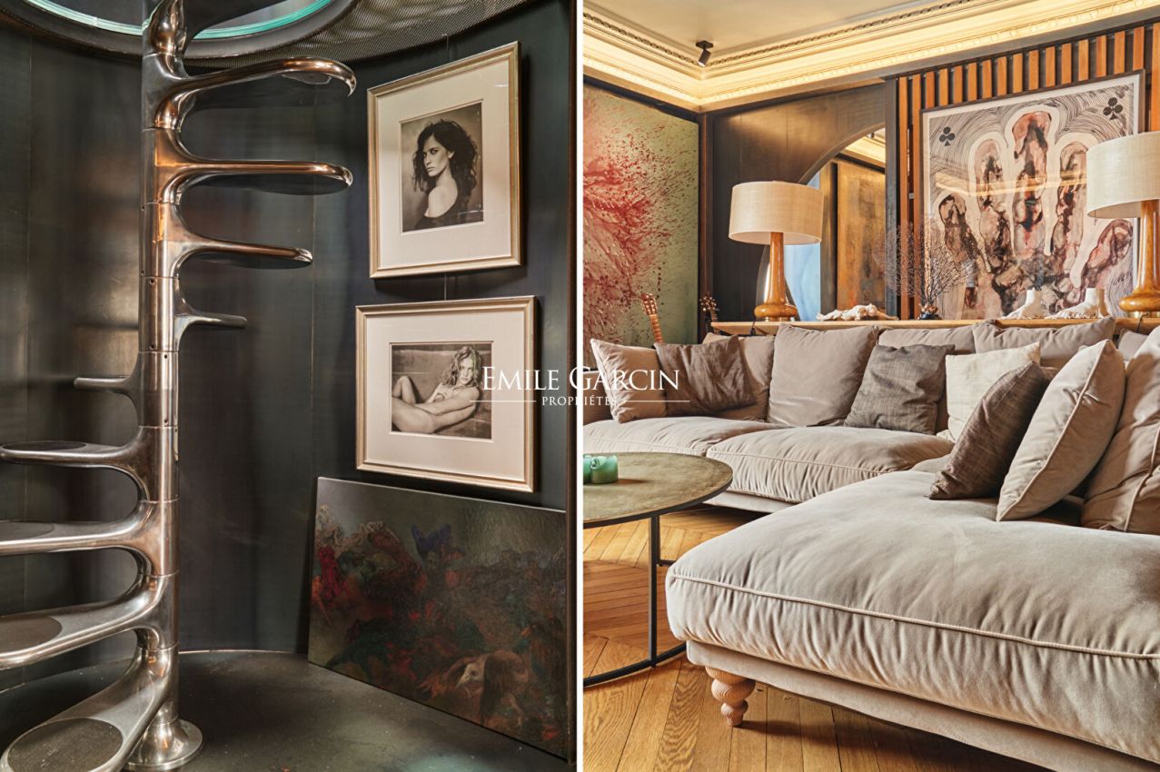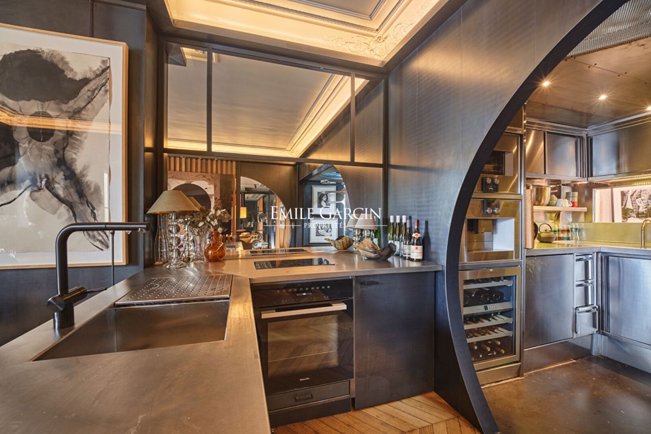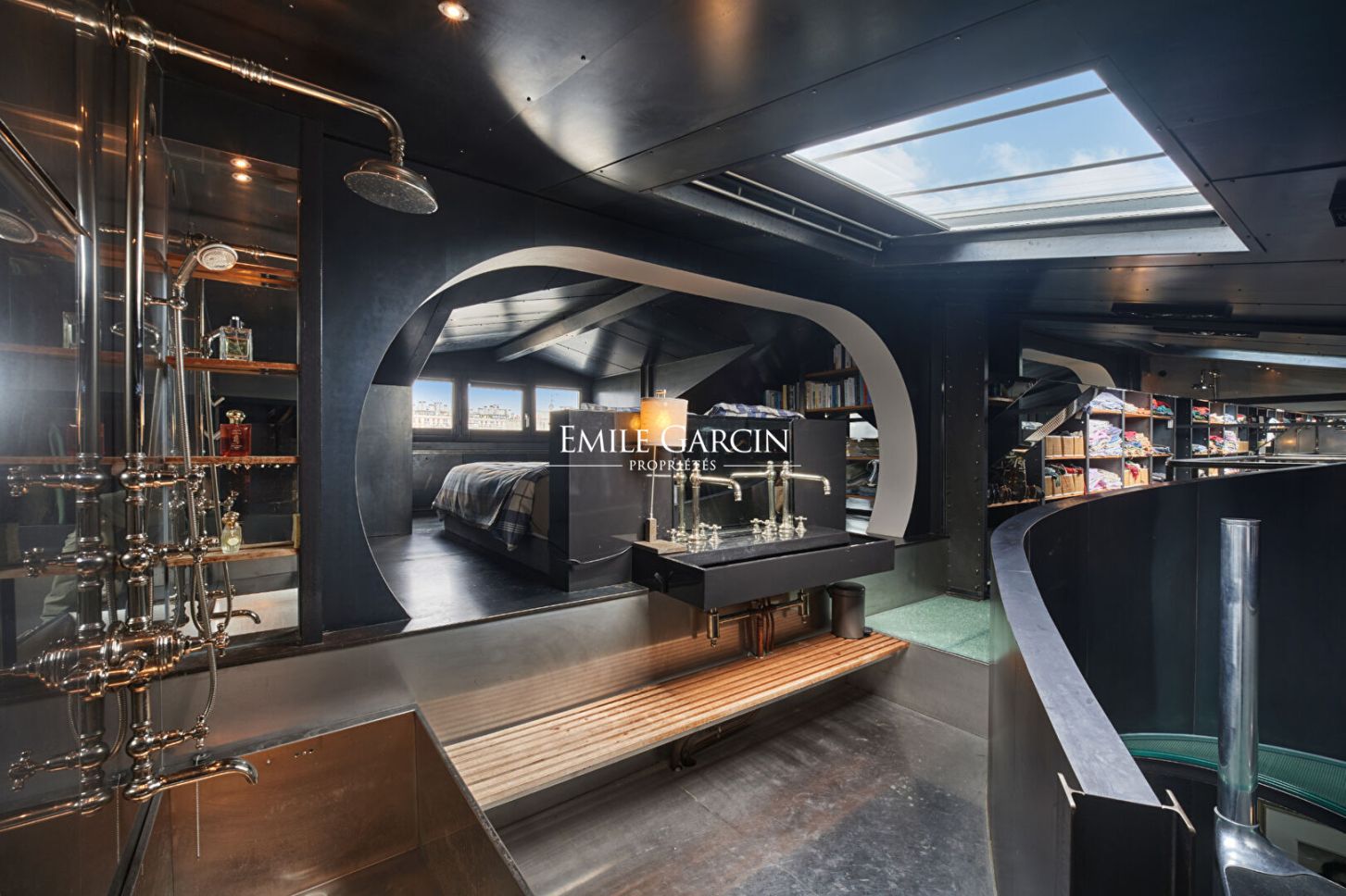 En exclusivité, dans l'élégant Hôtel particulier Leblanc-Barbedienne du XIX siècle, connu comme fonderie d'art Barbedienne (qui travaille avec les sculpteurs connus Auguste Rodin et Auguste Bartholdi), l'appartement en duplex de 76,97 m2 loi Carrez en cinquième (dernier) étage par ascenseur, se situe à deux pas du canal Saint-Martin. L'appartement spectaculaire est composé d'un intérieur d'acier et de bois, dans un univers de décoration, comme une rencontre d'oeuvre d'art, qui se révèle à partir d'un certain axe de vue, acier et panneaux de bois habillent des murs avec des passages en demi-lune vers salon et salle à manger. Cet appartement rare, profite d'une belle lumière douce, orienté Est-Ouest, avec des vues dégagées. L'ensemble compose un intérieur où chaque détail trouve sa place, une ambiance raffinée. Il se compose au premier étage: d'une entrée bureau bibliothèque, d'un salon, d'une salle à manger, d'une cuisine semi-ouverte équipée et aménagée, toilettes invités, à l'étage côté cour d'une chambre en forme de bateau avec dressing, salle de bains avec toilettes. Cave. Possibilité de parking dans la cour. Coup de coeur. Idéal pour un pied à terre. Copropriété de 21 lots - dont 10 lots habitation.(Procédure en cours).