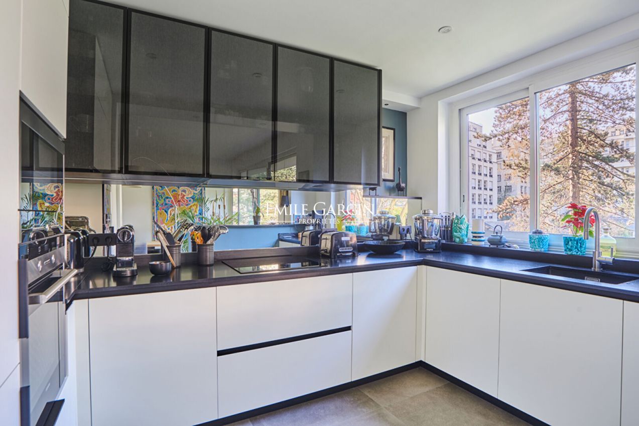 La cuisine , entièrement rénovée par une prestigieuse marque italienne, s'intègre harmonieusement à l'espace de réception. Le parquet en chêne français apporte une touche chaleureuse et authentique à l'ensemble.