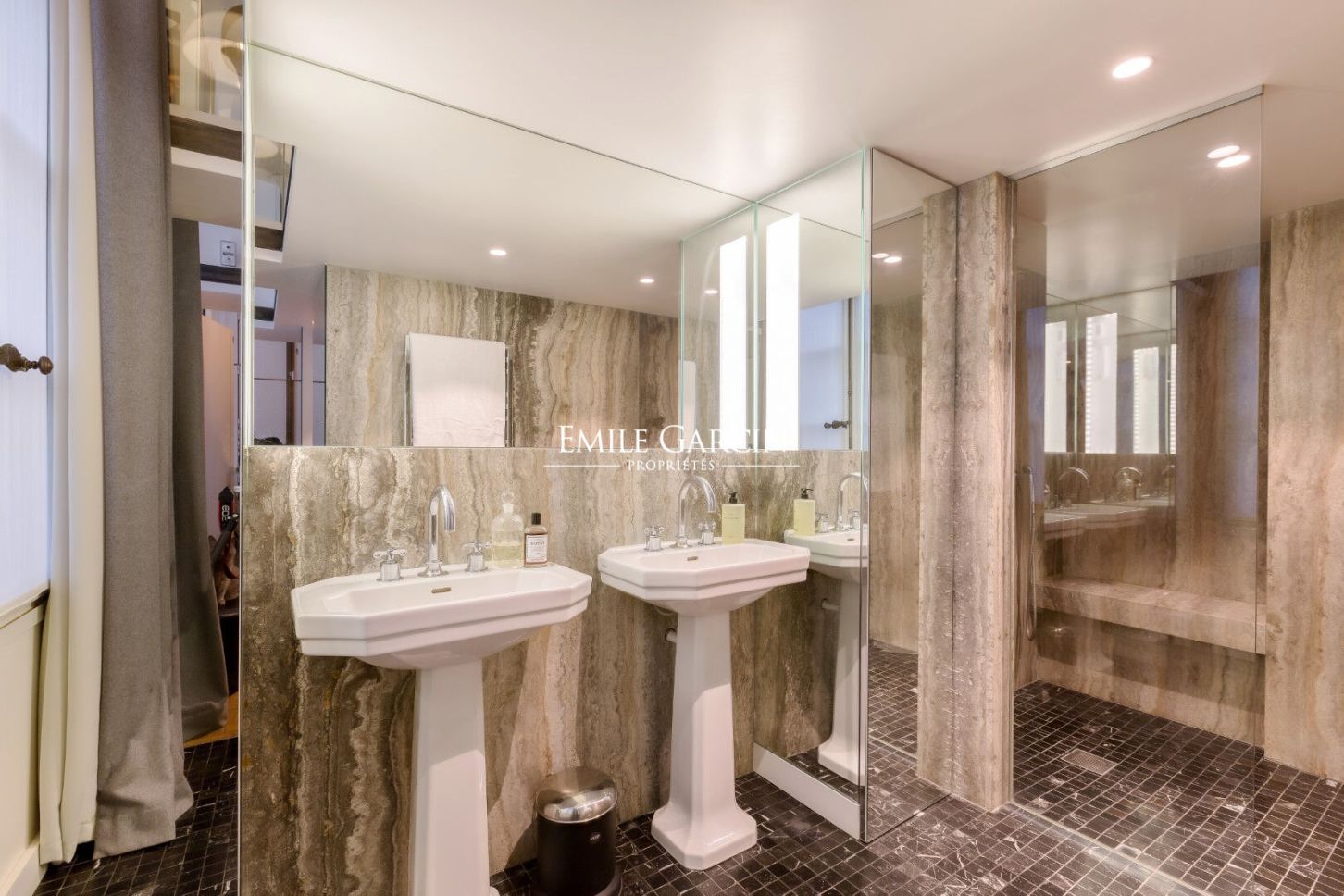 Jardin du Palais Royal, au 2ème étage avec ascenseur d'un superbe immeuble du XVIIIe siècle, cet appartement de 122 m² au sol (101,70 m² Carrez) allie charme d'époque et rénovation haut de gamme signée par un cabinet d'architecture renommé. L'espace de réception de 57 m², baigné de lumière, séduit par sa cheminée d'époque, son enfilade de fenêtres et sa cuisine dînatoire entièrement équipée. En mezzanine, une chambre climatisée avec dressing et salle d'eau privative offre un confort absolu. L'appartement traverse les siècles avec élégance, conservant parquet, moulures et cheminée, sublimés par une hauteur sous plafond de 4,05 m. Nombreux rangements, débarras et une grande cave complètent ce bien d'exception. Possibilité d'usage professionnel. Un lieu rare et préservé, dans un environnement prestigieux et paisible. Copropriété de 28 lots - dont 21 lots habitation. (Pas de procédure en cours).