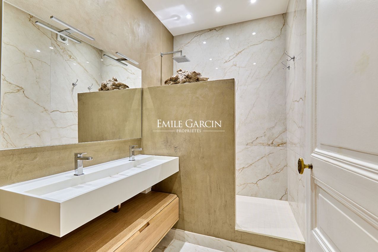 Une salle d'eau avec double vasque et douche à l'italienne, réalisée avec des matériaux de qualité complète le bon goût des lieux. Une cave de 10 m² complète ce bien. Copropriété de 55 lots - dont 55 lots habitation.