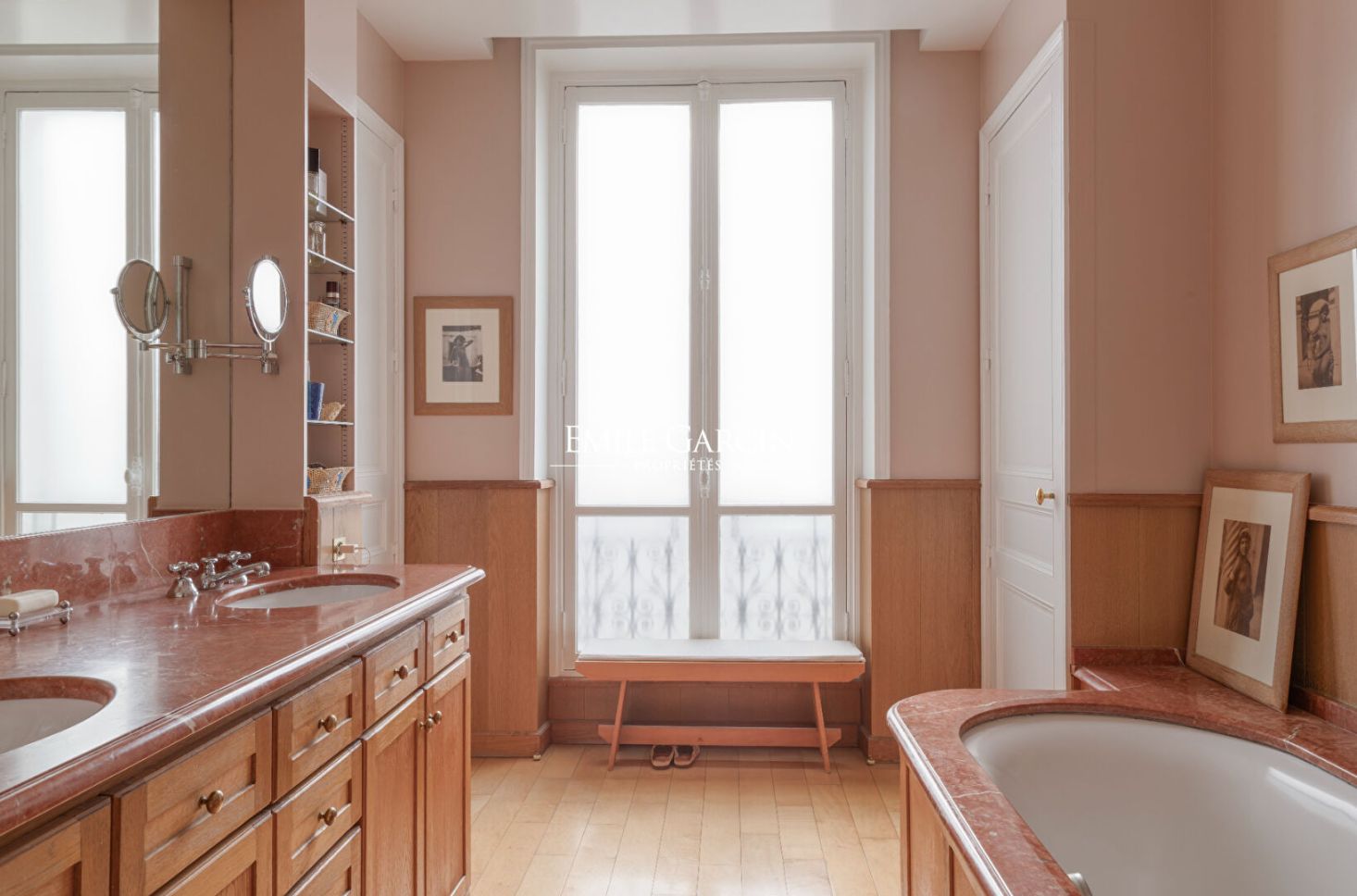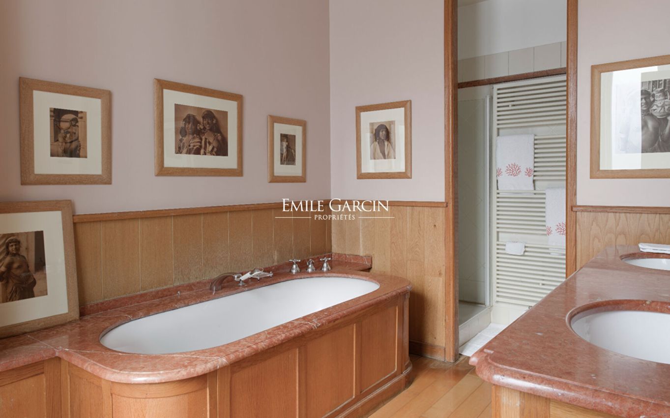 Rare, comme un hôtel particulier avec son accès indépendant dans une cour pavée à usage presque privative, un appartement de réception et familial de 400 m² exposé Ouest composé d'une élégante et large entrée au rez de chaussée avec wc d'invités, à l'étage, une galerie d'entrée, une très belle enfilade avec une vue Seine pour une première réception, une chambre avec sa salle d'eau, un petit salon-boudoir, une grande salle à manger, une cuisine dînatoire avec un second accès ; Sur la cour, une suite parentale avec son dressing et un wc indépendant, une salle de bain complète avec douche, un dégagement isole l'espace des enfants avec trois chambres dont une avec une salle d'eau, wc, une buanderie, une salle de bain, une seconde cuisine pouvant devenir une nouvelle chambre avec dressing ou une salle de bain ou un appartement pour personnel de maison avec son accès indépendant.