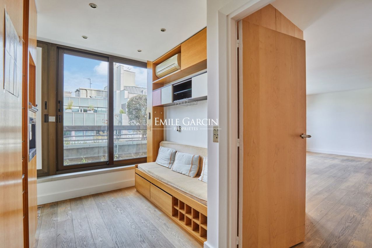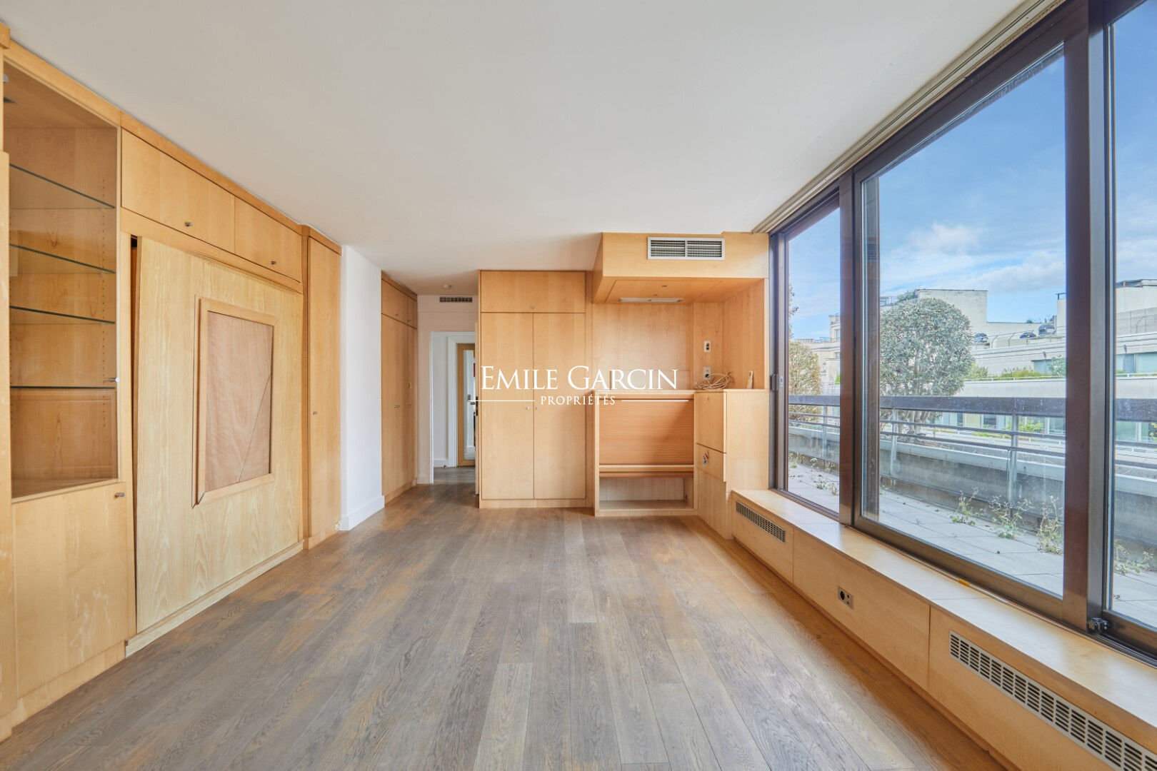 Paris 8ème arrondissement, à deux pas des Champs Elysées, pieds à terre idéal situé au 7ème et dernier étage d'un immeuble des années 70, un appartement studio / loft de 47 m² environ avec une terrasse de 20 m². Entrée, pièce principale, cuisine entièrement équipée, salle de bains avec un WC, et coin TV. Climatisation. Copropriété de 329 lots ().
