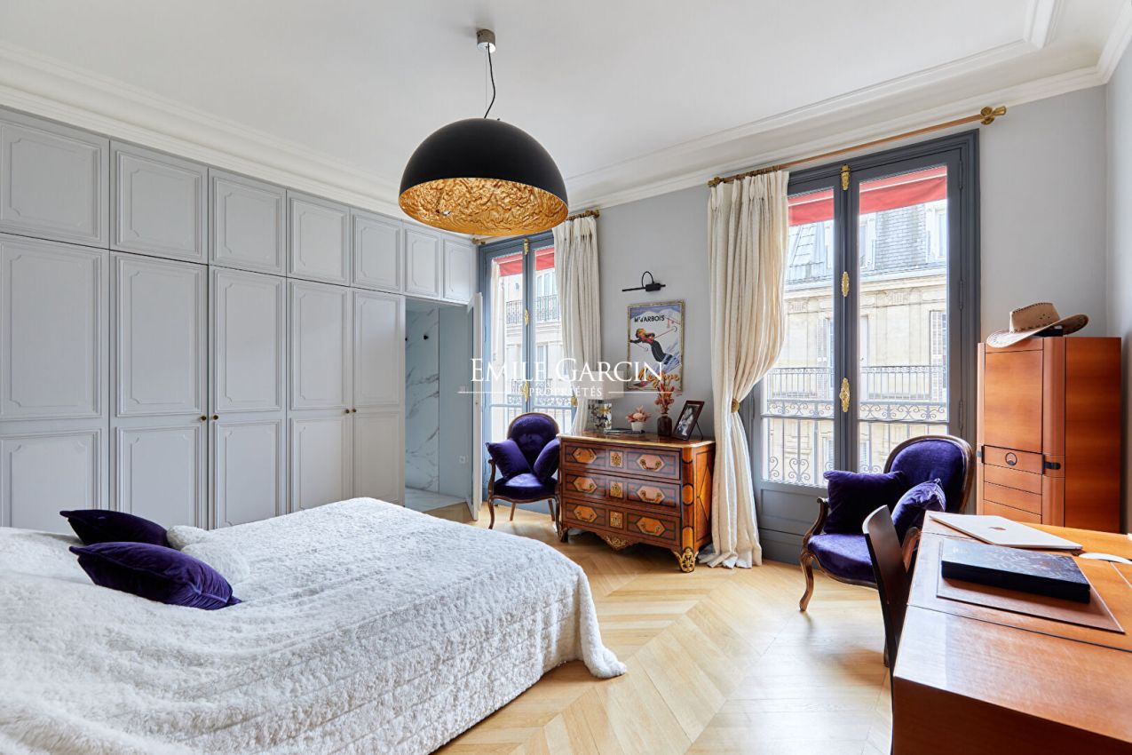 Place Victor Hugo. Adresse prestigieuse, étage élevé, vue dégagée et balcon filant Situé au coeur de la très prisée place Victor Hugo, dans un immeuble en pierre de taille aux parties communes élégamment entretenues, cet appartement familial et de réception offre une superficie totale d'environ 153 m² (incluant un studio indépendant ). Baigné de lumière grâce à son orientation Sud-Ouest et perché au-dessus de la cime des arbres, il bénéficie d'un cadre exceptionnel et de volumes parfaitement équilibrés. L'appartement principal se compose d'une entrée ouvrant sur un vaste séjour en angle ainsi qu'une salle à manger offrant de magnifiques perspectives dégagées sur la place. Une cuisine dînatoire haut de gamme entièrement équipée complète l'espace de vie. La partie nuit comprend une suite parentale avec sa salle de bains et ses toilettes, deux chambres supplémentaires se partageant une salle de douche, ainsi que des toilettes invités. Au demi-palier, un studio de 17 ,50 m² faisant partie intégrante du lot principal propose une pièce de vie avec sa salle d'eau et ses toilettes : idéal pour un adolescent, du personnel, un bureau indépendant ou un revenu complémentaire. Un balcon filant d'environ 18 m² prolonge le séjour et permet de profiter pleinement de la vue. Une cave saine vient parfaire ce bien rare.