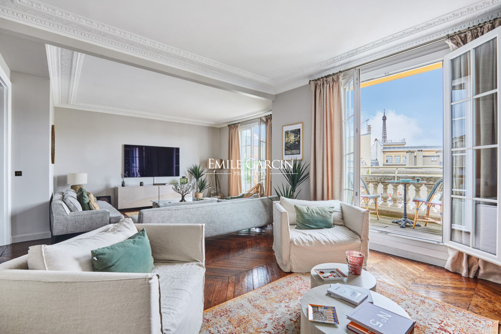 Prestations de qualité, parquet, moulures, cheminée (en état de fonctionnement), et une vue dégagée sur la Tour Eiffel viennent parfaire ce bien d'exception.