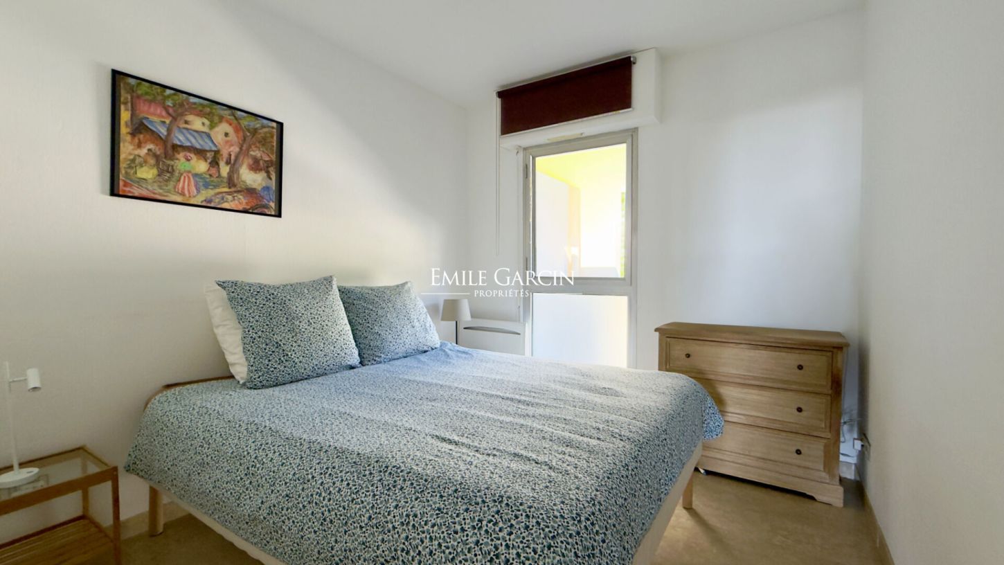 Dans une résidence prisée de Cassis, au calme absolu et entourée de verdure, appartement traversant idéalement situé à quelques pas du centre et des calanques.