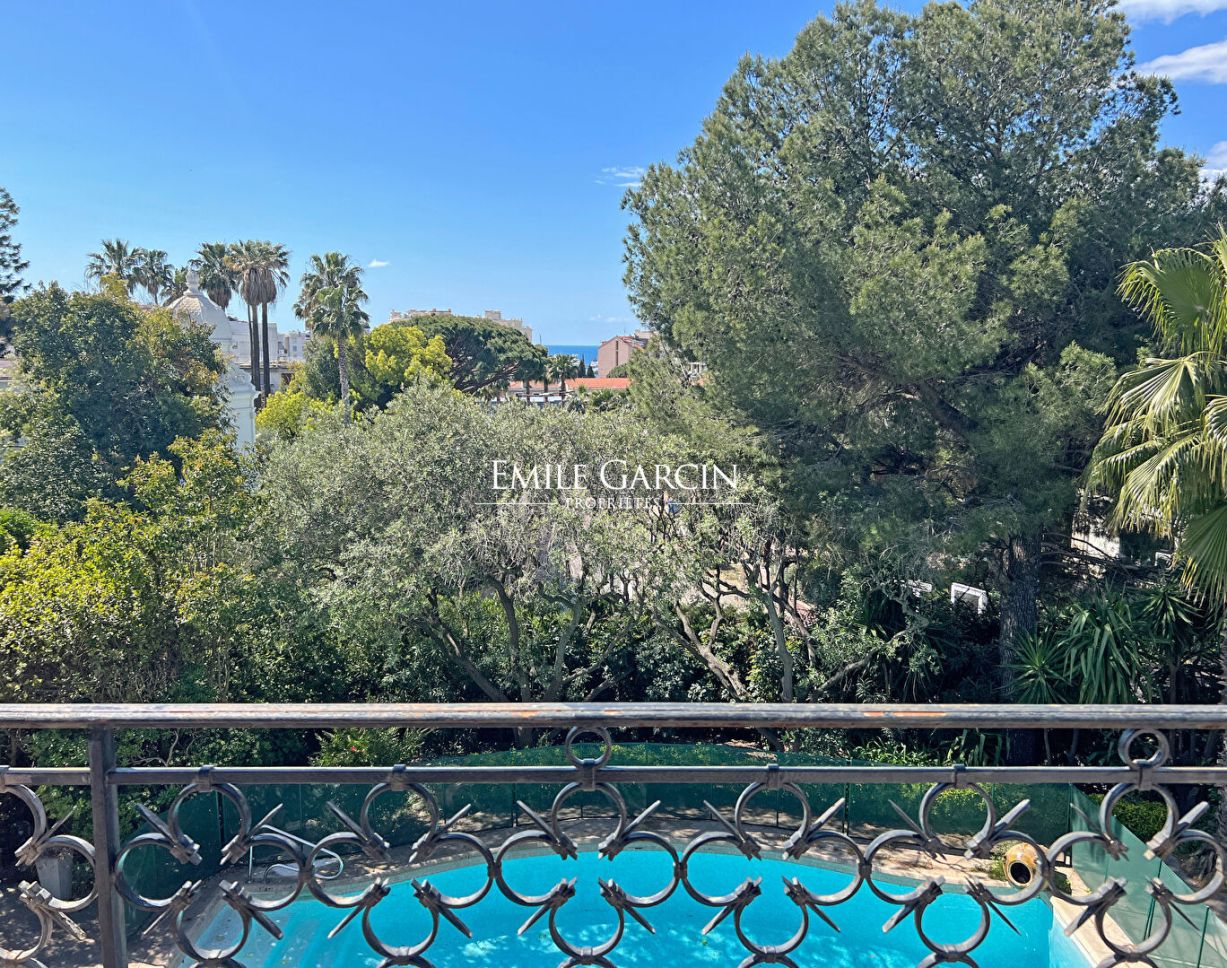 A vendre, Côte d'Azur, Cannes centre-ville, dans le quartier de la basse Californie, charmante maison de ville d'une superficie d'environ 250m2 habitables sur 3 niveaux avec 50m2 de dépendances, entièrement à rénover. Lumineuse, la maison aux volumes généreux, se compose d'un grand espace séjour/salle à manger avec cheminée, d'une cuisine indépendante, de 5 chambres spacieuses, de deux salles de bains, et de nombreux rangements. Toutes les chambres ont accès sur l'agréable terrasse qui offre un aperçu mer. Au du rez-de-jardin, un espace qui peut servir de pool house, de garage ou d'appartement indépendant ouvre sur le jardin paysager de 900m2 et sa belle piscine.
