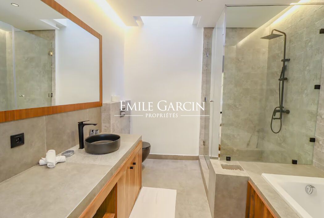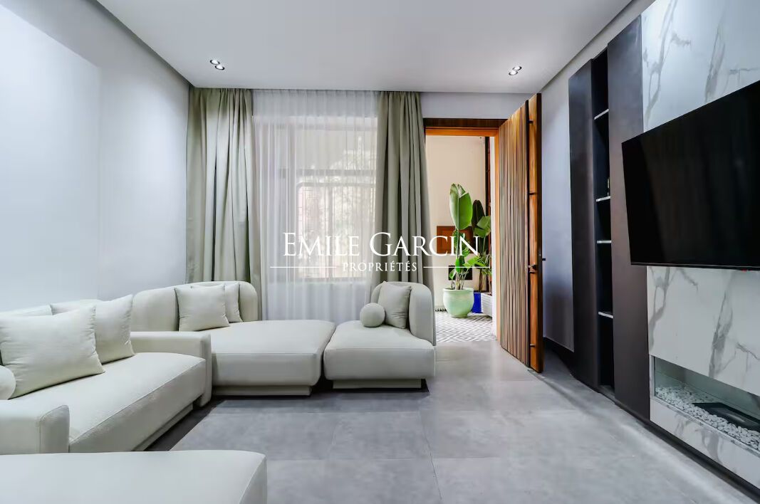 Duplex de 90 m² habitable et 40 m2 au sol, entièrement refait à neuf et situé dans le quartier recherché de Chrifia composé au Rdc d'un salon et d'une cuisine ouverte, au 1er étage belle chambre en suite avec sa salle de bain, terrasse aménagée avec un jacuzzi.