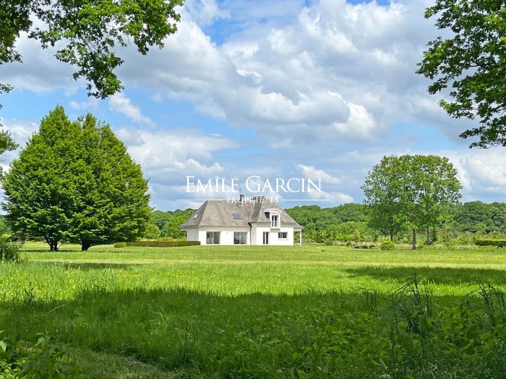Le parc boisé, avec ses allées en étoile majestueuses, est le témoin d'un passé prestigieux. Au coeur de ce paysage enchanteur se trouve une maison contemporaine, alliant confort moderne et raffinement. Elle offre un vaste séjour lumineux ouvert sur la nature, ainsi que cinq chambres. L'un des joyaux de cette propriété est son étang de 4 hectares, véritable miroir d'eau aux reflets changeants, et son petit pavillon.