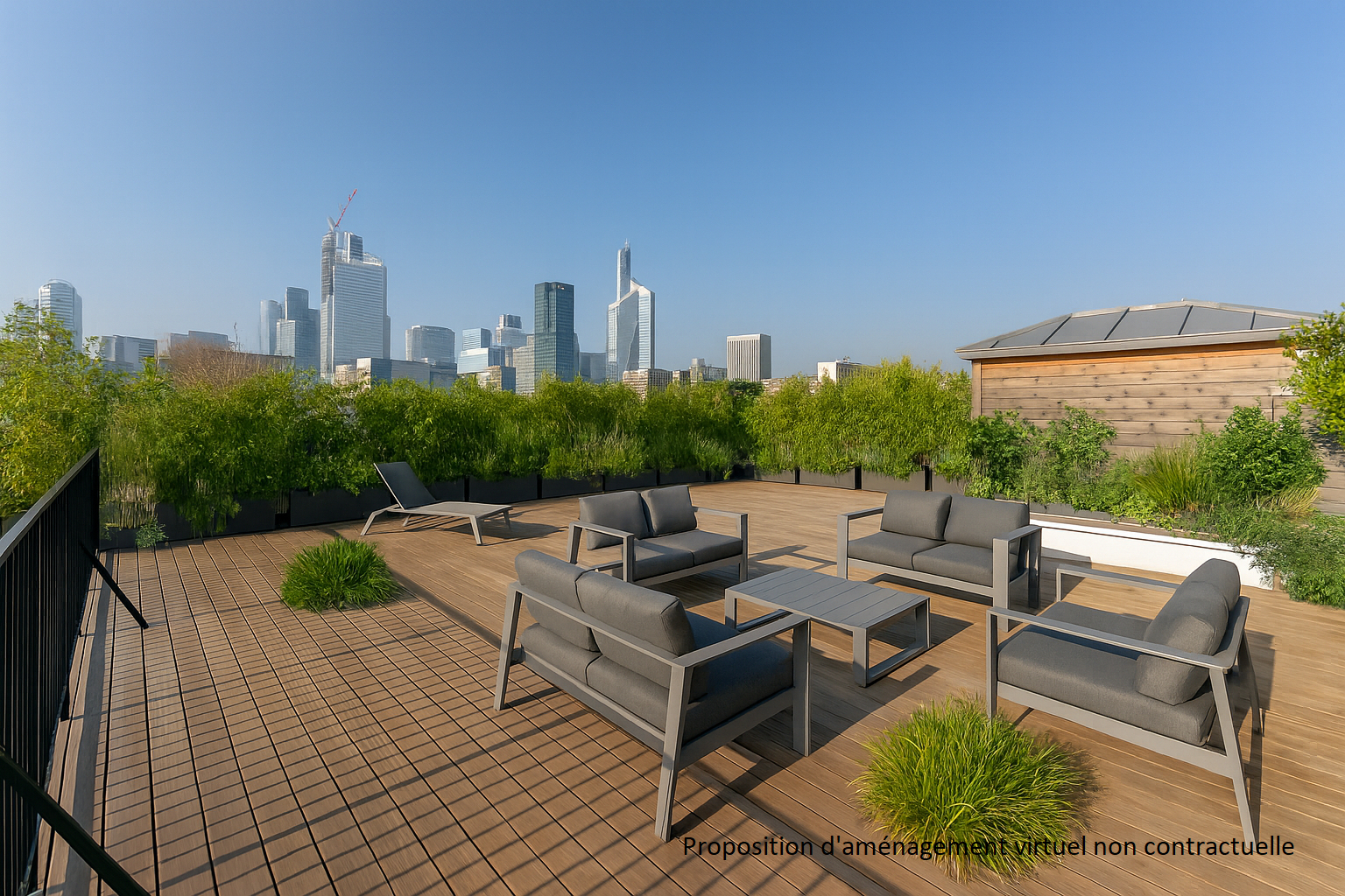 Un escalier en pierre et ferronnerie d'époque conduit aux étages. Au premier, une galerie ouvre sur un grand espace de réception traversant Sud Ouest / Nord Est. A gauche, un salon avec cheminée, à droite, un salon bibliothèque. Toilettes invités et dressing. Au deuxième, une suite parentale comprenant un grand bureau, une salle de bains attenante, et une chambre avec salle de douches, et toilettes. Au troisième étage, trois chambres, une salle de bains, des toilettes et un espace de rangement. Au quatrième étage, une terrasse de 100m2 offre une vue panoramique sur la Défense, la Seine et Neuilly.