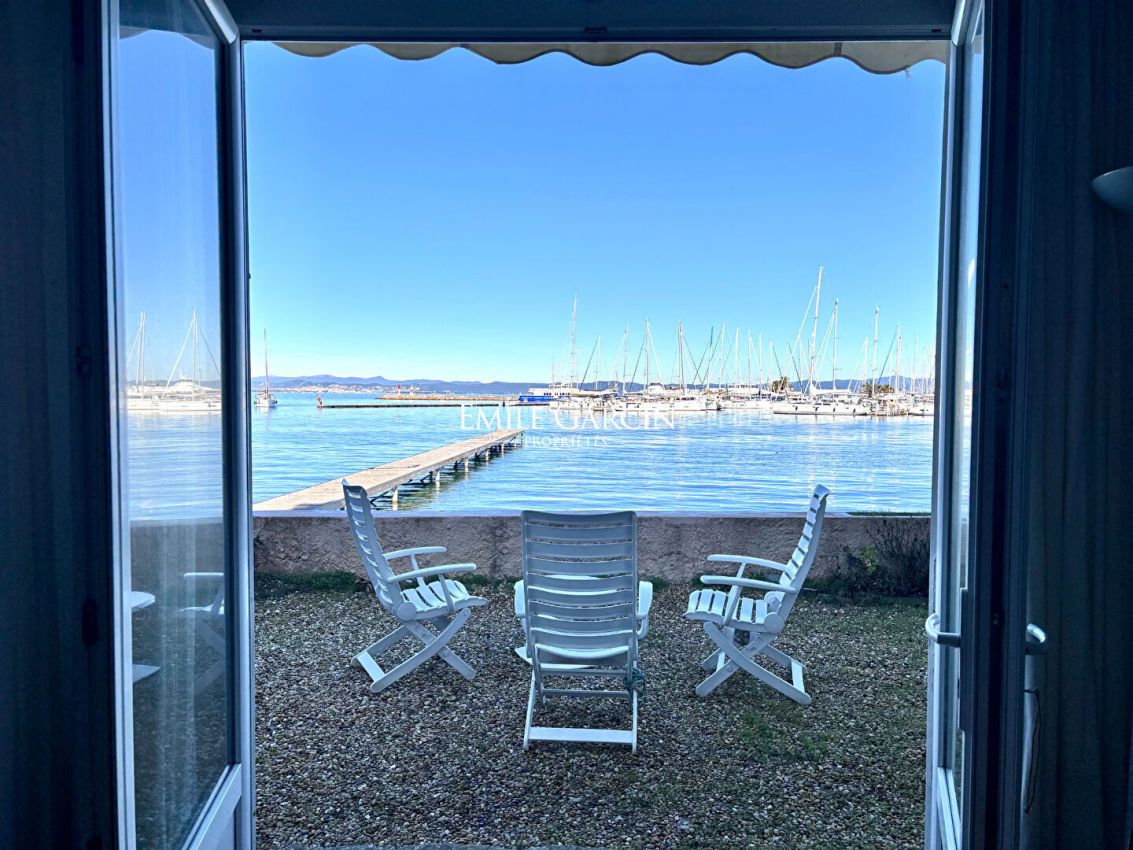 Laissez-vous séduire par cet appartement en bord de mer, offrant un jardin privatif intimiste et une vue spectaculaire sur la baie de Porquerolles.