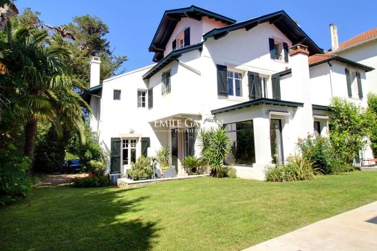 Idéalement située à Biarritz, à proximité immédiate du golf de Biarritz, des commerces, des écoles et de toutes les commodités, cette maison familiale d'environ 150 m² bénéficie d'un emplacement privilégié au calme, nichée dans une rue confidentielle et résidentielle. Organisée autour d'une cour-terrasse d'environ 100 m², véritable coeur de vie extérieure, cette propriété lumineuse offre au rez-de-chaussée un salon chaleureux, une grande cuisine dinatoire entièrement équipée, une salle à manger conviviale et beaucoup de rangements. L'ensemble de l'espace de vie profite d'une exposition plein sud, idéal pour profiter du soleil. A l'étage, l'espace nuit climatisé comprend cinq belles chambres, deux salles d'eau et une salle de bains, offrant un confort optimal pour une grande famille ou pour une résidence secondaire. De nombreux rangements viennent compléter ce bien d'exception. C'est un bien rare sur le marché, combinant emplacement recherché, volumes généreux et qualité de vie au coeur de l'un des quartiers les plus prisés de Biarritz.