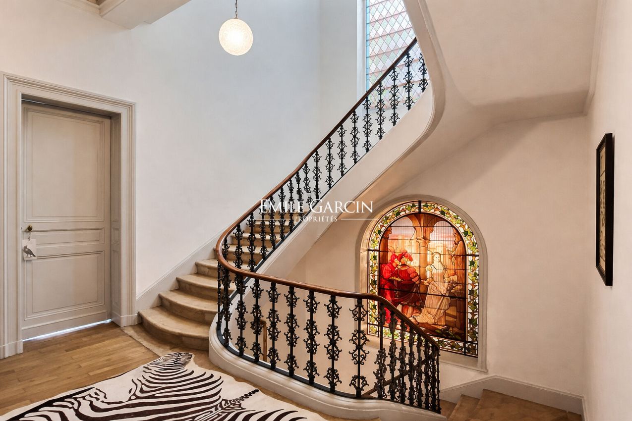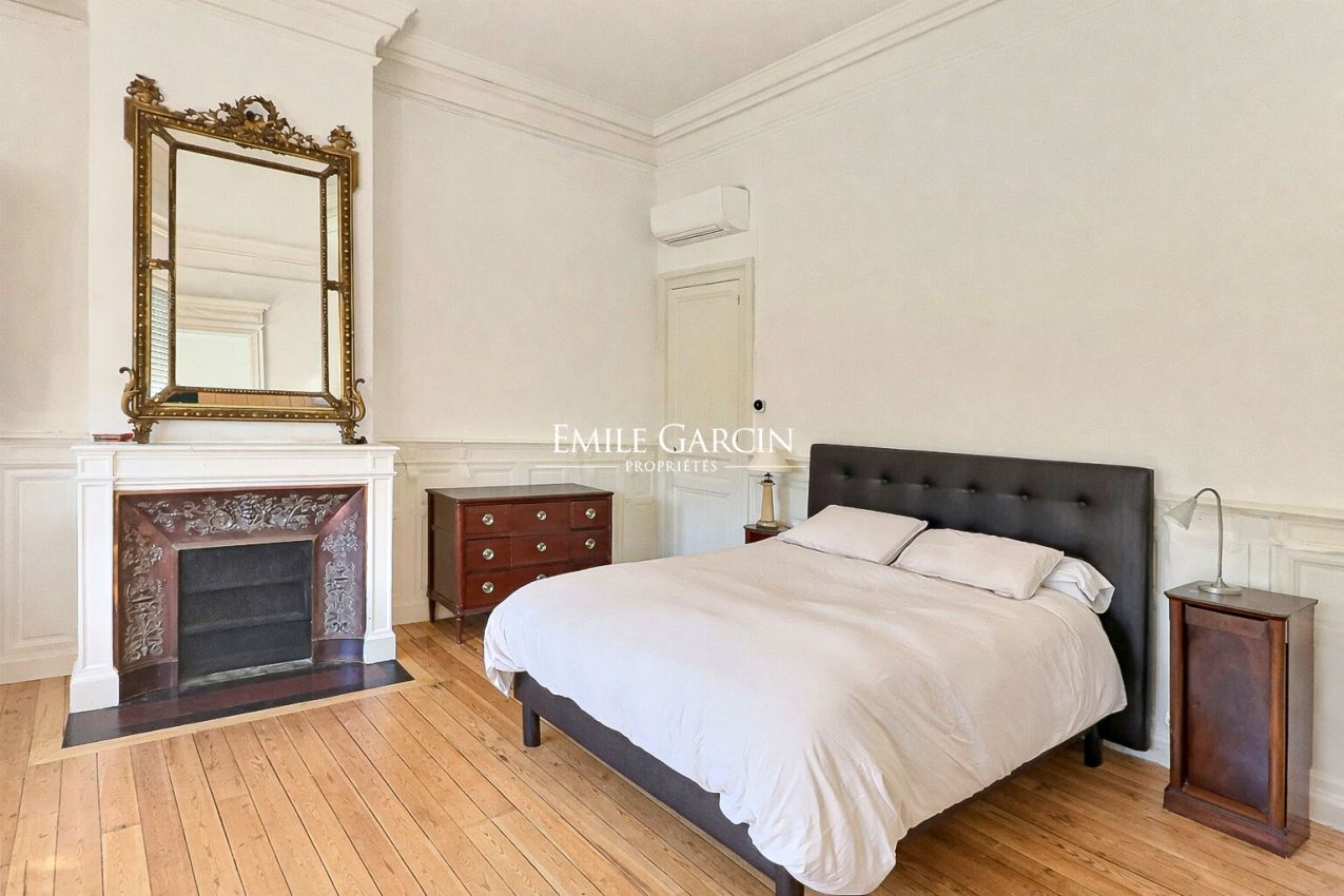 Dès les premiers pas, la maison d'environ 400 m² dévoile de vastes espaces de réception baignés de clarté naturelle, où le charme de l'ancien s'exprime pleinement à travers les parquets, les moulures et les cheminées. L'ensemble s'ouvre harmonieusement sur une véranda prolongée par un grand jardin et sa piscine, rare en ville, assurant un cadre de vie privilégié, au calme et à l'abri des regards.