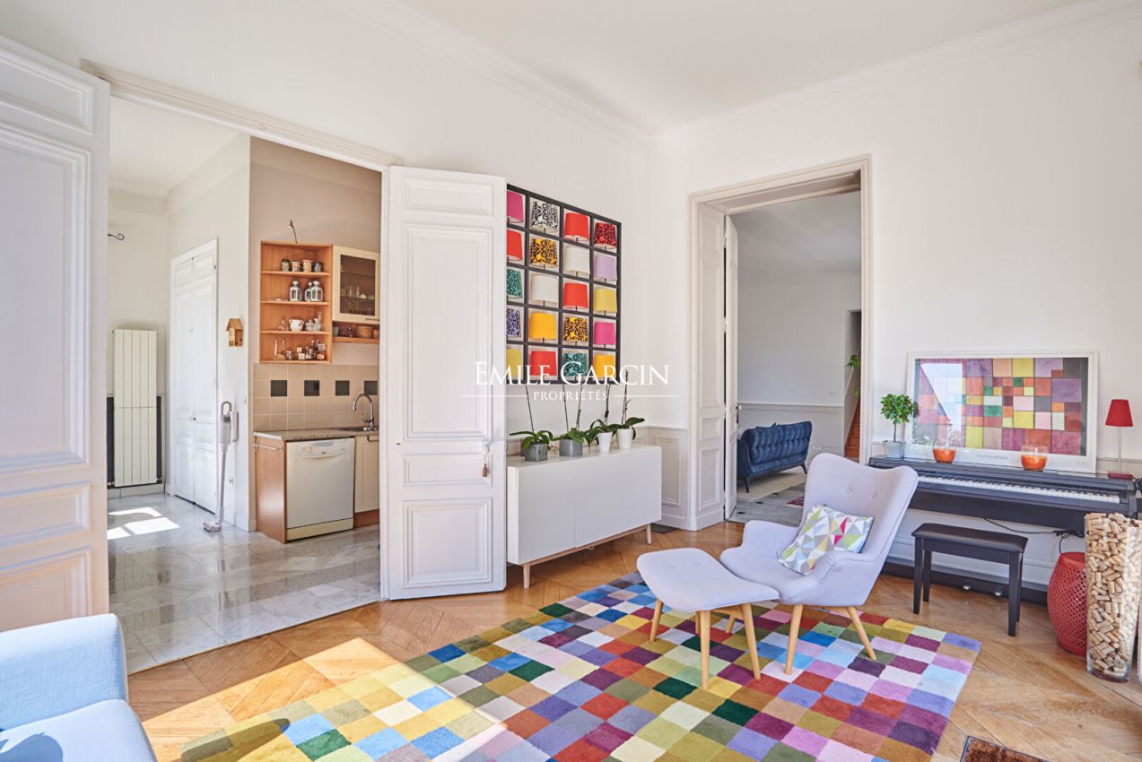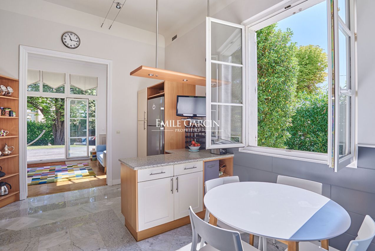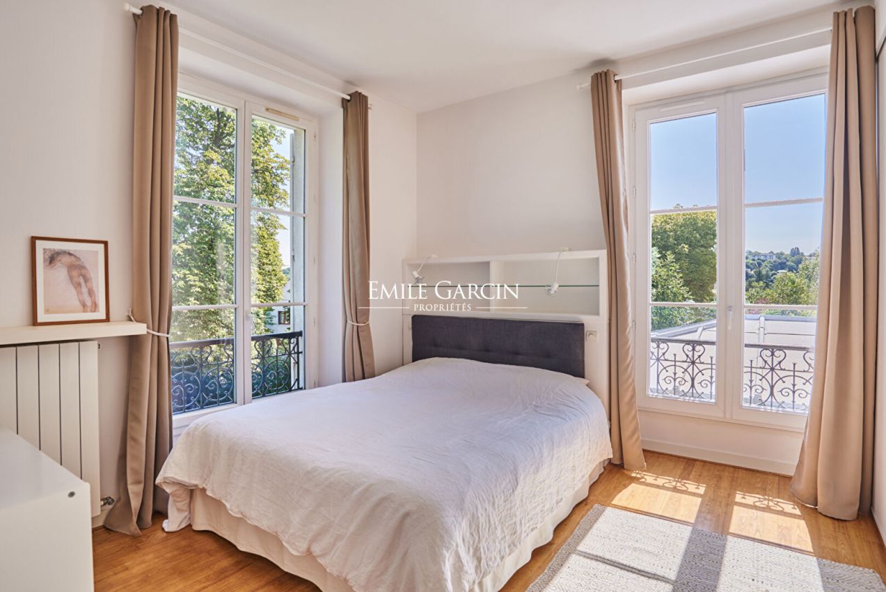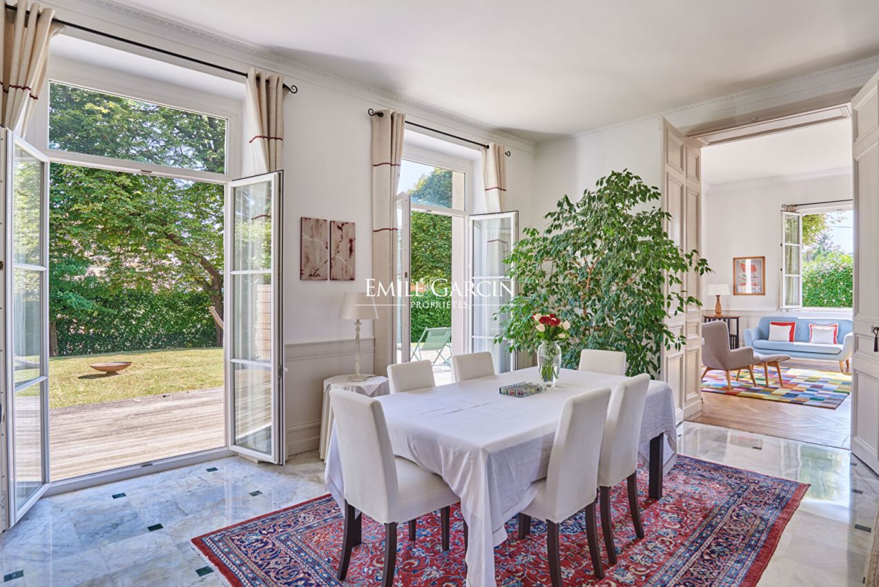 Cette maison de 2O5 m² environ de style Napoléon III, située à Bougival a été édifiée en 1850 avec une extension au début du XXe. Elle est composée de la manière suivante : Au rez de chaussée : une entrée, une cuisine, un salon traversant avec volumes et luminosité, un autre salon salle à manger, WC avec lave mains. Au premier niveau : une salle de bains, deux chambres avec placards, une salle de bains et WC. Au deuxième niveau : trois chambres, une salle de bains et WC. Une annexe de 30 m² composée d'une pièce avec cuisine ouverte et un WC séparé et au 1er niveau, une chambre avec salle d'eau. Un sous-sol complet avec chaudière au gaz, une cave à vin, une pièce de stockage, une terrasse et un jardin clos entourant la maison complètent ce bien. Située à proximité de la gare de Bougival (7 minutes à pied), cette maison en parfait état et à la décoration soignée séduira une famille souhaitant trouver le calme et la tranquillité à proximité de Paris.