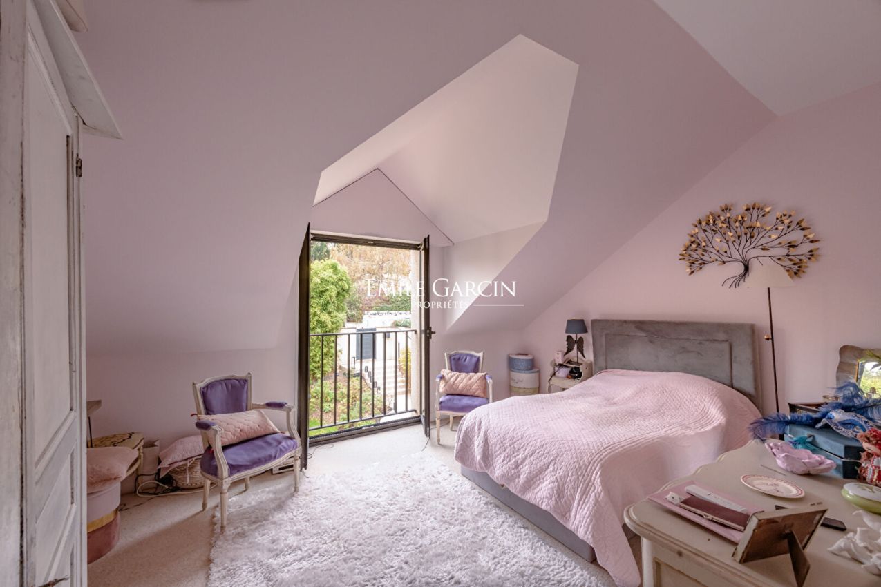Les surfaces sont organisées de la manière suivante : Au rez-de-chaussée : Une entrée, une cuisine haut de gamme aménagée, un salon salle à manger cathédrale avec cheminée, WC et placards, une chambre d'amis, une salle de bains avec douche et baignoire, un dressing à chaussures. Au 1er étage : Une grande chambre avec placards, une salle de bains avec douche et baignoire, deux autres chambres avec placards, un atelier de peintre, une mezzanine et un grenier, WC. Un sous-sol de 100 m² entièrement aménagé avec une chaudière Viessmann neuve, un aspirateur centralisé Cyclovac, deux pièces de rangement, dont une donnant sur l'extérieur, une buanderie, un grand garage pour deux voitures. A l'extérieur, un jardin paysager exposé sud-est avec des essences japonaises complète ce bien. Cette maison contemporaine très lumineuse est parfaitement entretenue avec des matériaux haut de gamme et ne nécessite aucun travaux. Elle est située dans un quartier résidentiel de Bougival à proximité de la gare. Elle conviendra parfaitement à une famille d'expatriés ou de parisiens souhaitant s'installer dans l'ouest parisien dans un environnement à la fois citadin et calme.