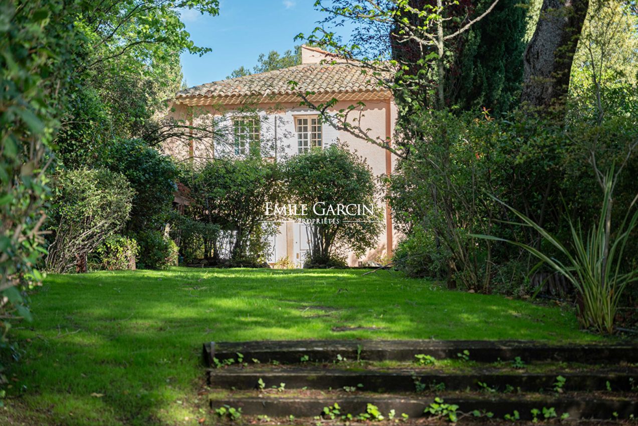 Nichée au coeur des collines aixoises, sur 1,4 hectare de nature préservée, cette demeure de caractère offre un cadre exceptionnel à seulement quelques minutes du centre-ville. Son architecture pleine de charme, son parc ombragé traversé par un cours d'eau et ponctué de fontaines, ainsi que ses terrasses aux ambiances variées avec vue sur la majestueuse Sainte-Victoire composent un art de vivre rare et privilégié. La maison principale d'environ 300 m² séduit par ses beaux volumes, sa belle hauteur sous plafond et sa luminosité généreuse. Elle propose de vastes espaces de réception, un bureau et cinq chambres confortables. Une maison de gardien indépendante comprend deux appartements d'environ 50 m² chacun, disposant chacun de leur espace extérieur. Une propriété d'exception, rare à cette distance du centre d'Aix-en-Provence.