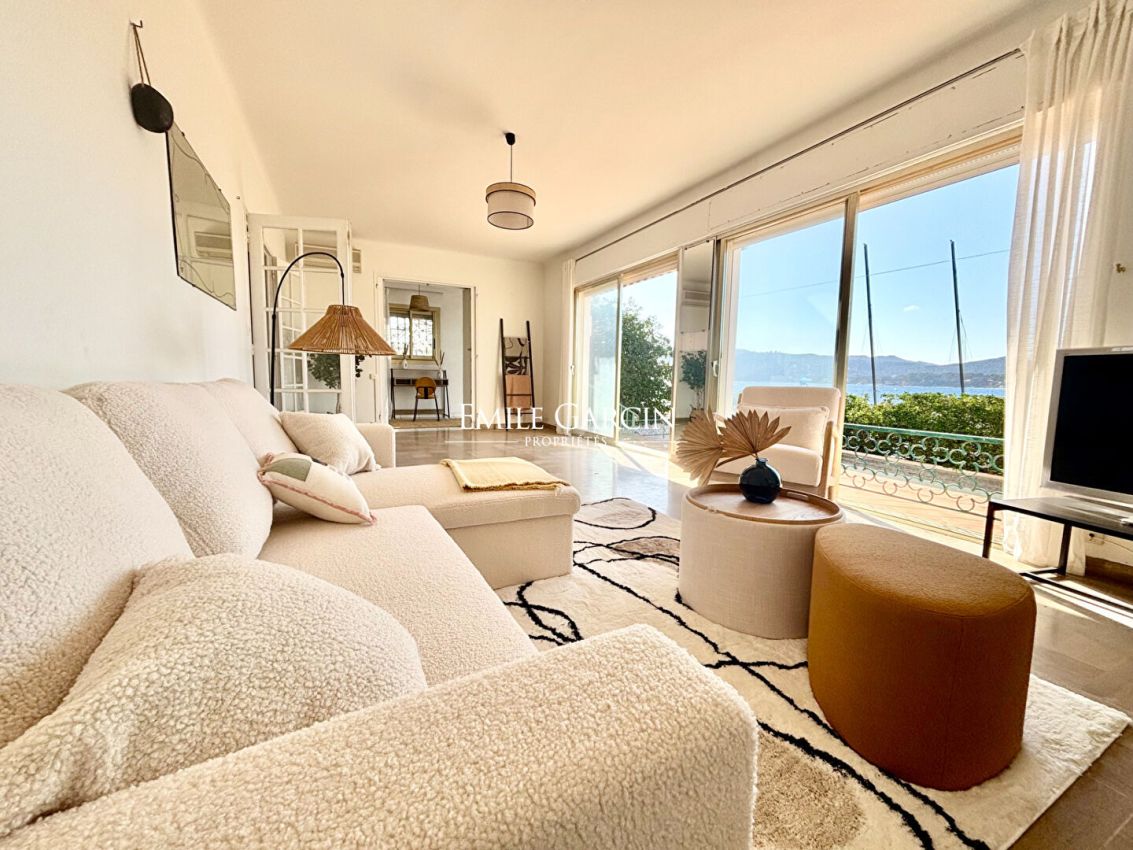 La maison de 126 m² propose en rez-de-jardin, un salon ouvrant sur la terrasse et la piscine, une cuisine, un bureau, une salle d'eau. L'étage se répartit en trois chambres spacieuses dont deux avec salle de bains. Un portillon situé en contrebas de la villa donne un accès direct à la plage. Très rare pour ce secteur, la maison dispose d'une confortable piscine de 7x4 m. Son emplacement exceptionnel, permet d'admirer l'anse des Sablettes et les « Deux Frères » formation rocheuse située au large et source de nombreuses légendes locales.