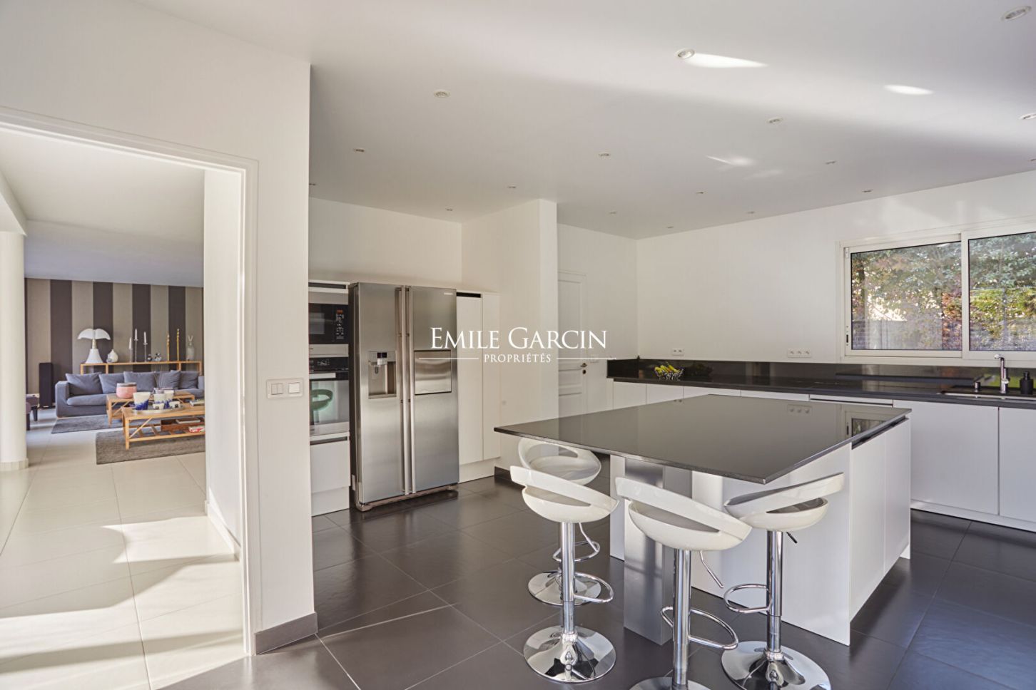 Une adresse discrète au coeur de la nature, aux portes de Paris. Située dans l'un des secteurs les plus prisés de La Celle-Saint-Cloud, en lisière de la forêt domaniale et à quelques minutes seulement de Vaucresson, cette élégante demeure contemporaine de 465 m² au sol ( 265 m² habitables) offre un cadre de vie rare, alliant sérénité et lumière. Exposée plein Sud et parfaitement préservée de tout vis-à-vis, elle développe 465 m² au sol dont 265 m² habitables, au sein d'un jardin privatif paysager d'environ 1 000 m². La maison s'ouvre, dès l'entrée, sur de généreux volumes. Le vaste séjour de 60 m², prolongé par de larges baies vitrées, offre un accès direct à une terrasse ensoleillée d'environ 50 m². La cuisine familiale, élégante et fonctionnelle, complète harmonieusement ce niveau. Une chambre ou bureau de plain-pied avec salle d'eau privative complète ce niveau. L'étage est composé d'une suite parentale avec terrasse, salle de bains et dressing. Trois chambres supplémentaires, une salle de bains/douche, ainsi qu'un espace sous combles d'environ 92 m² au sol ? idéal pour une salle de jeux, un atelier d'art, un bureau ou deux chambres additionnelles ? offrent une grande modularité pour une vie familiale. Le vaste sous-sol, chauffé et entièrement aménagé, est composé d'une pièce de 60 m² pouvant devenir un home cinéma ou une salle de sport, une buanderie, une cave et de nombreux rangements. Un jardin clos et ensoleillé ainsi qu'un garage double complètent cet ensemble. Une demeure entretenue avec soin DPE performant. Huisseries en double vitrage, ravalement récent, toiture révisée, finitions soignées. La propriété témoigne d'un entretien irréprochable depuis sa rénovation complète. A 10 minutes à pied de la gare reliant La Défense et Paris Saint Lazare, proche des commerces et d'établissements scolaires recherchés, français et internationaux et d'installations sportives.