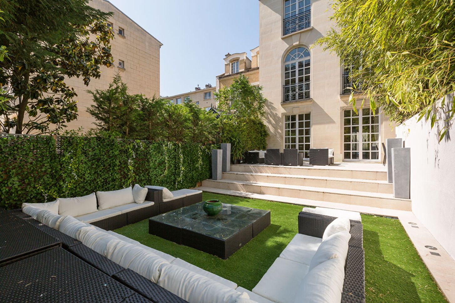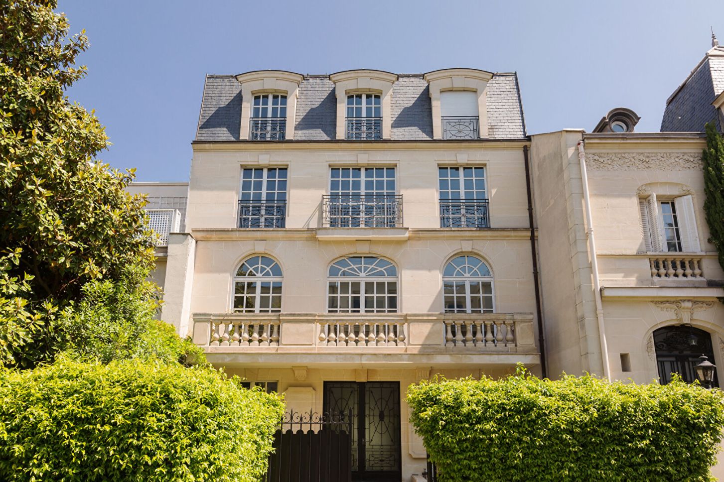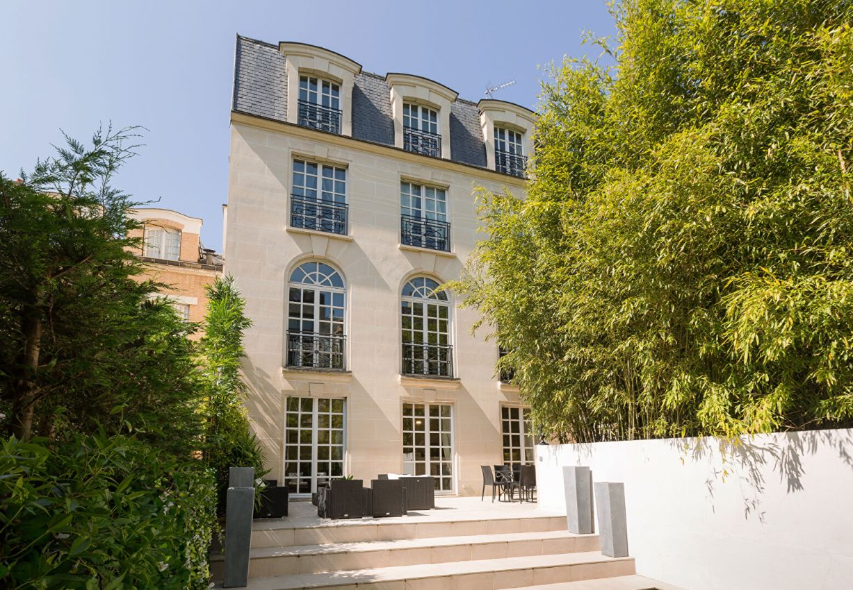 Dans une voie privée confidentielle de Neuilly-sur-Seine, cet hôtel particulier d'environ 644 m² s'élève sur cinq niveaux. A l'abri des regards, il déploie des espaces généreux et harmonieux, sublimés par un jardin paysager et un roof-top panoramique.