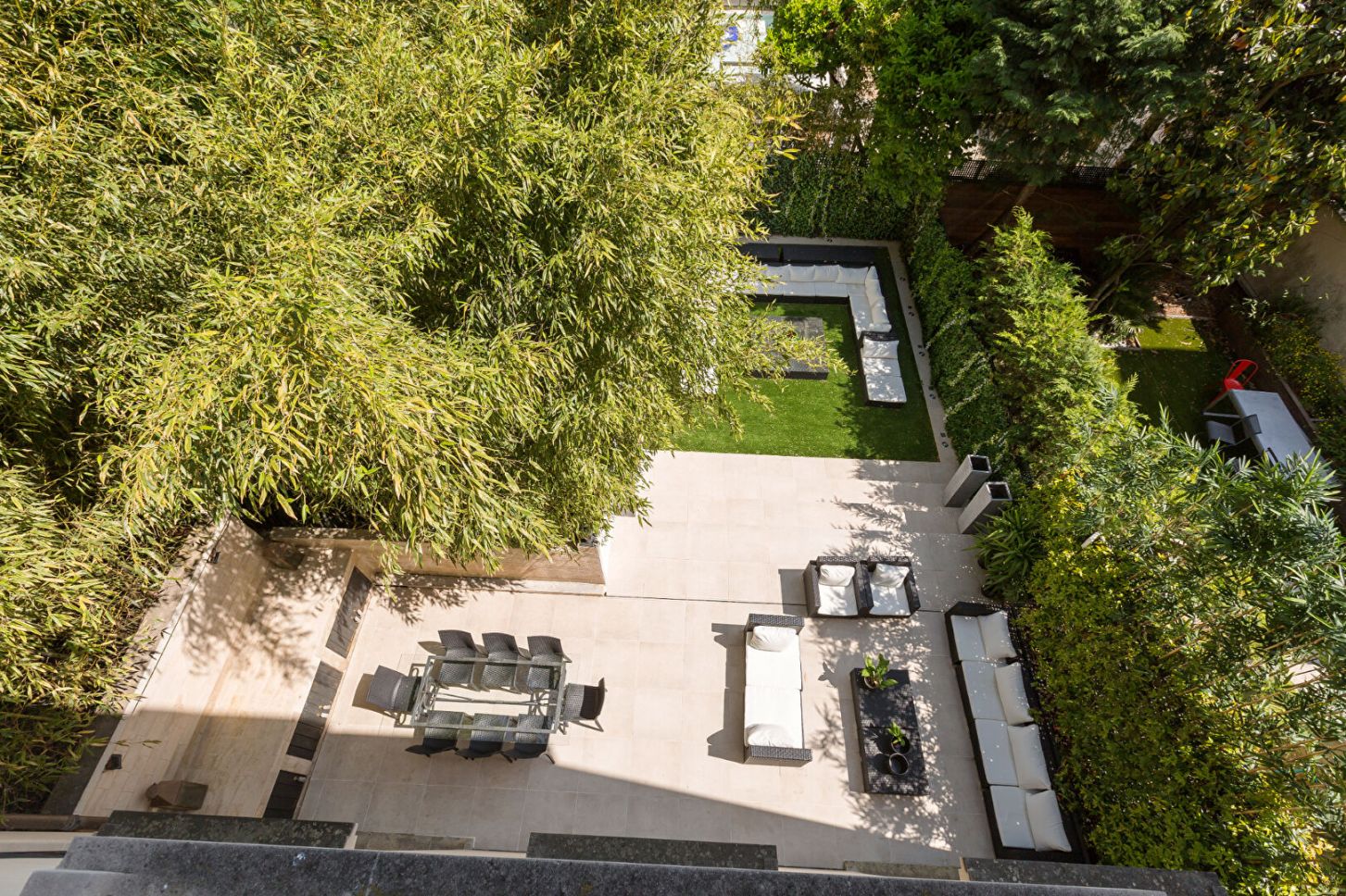 Au dernier niveau, un roof-top de 40 m² offre une vue à 360 degrés sur les toits de Neuilly et les environs, invitant à la détente ou aux soirées d'été en toute intimité.