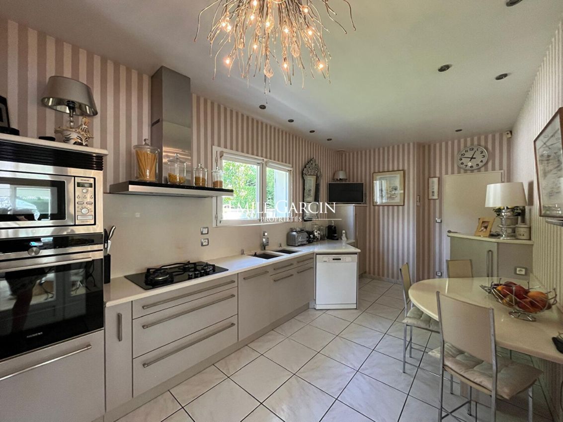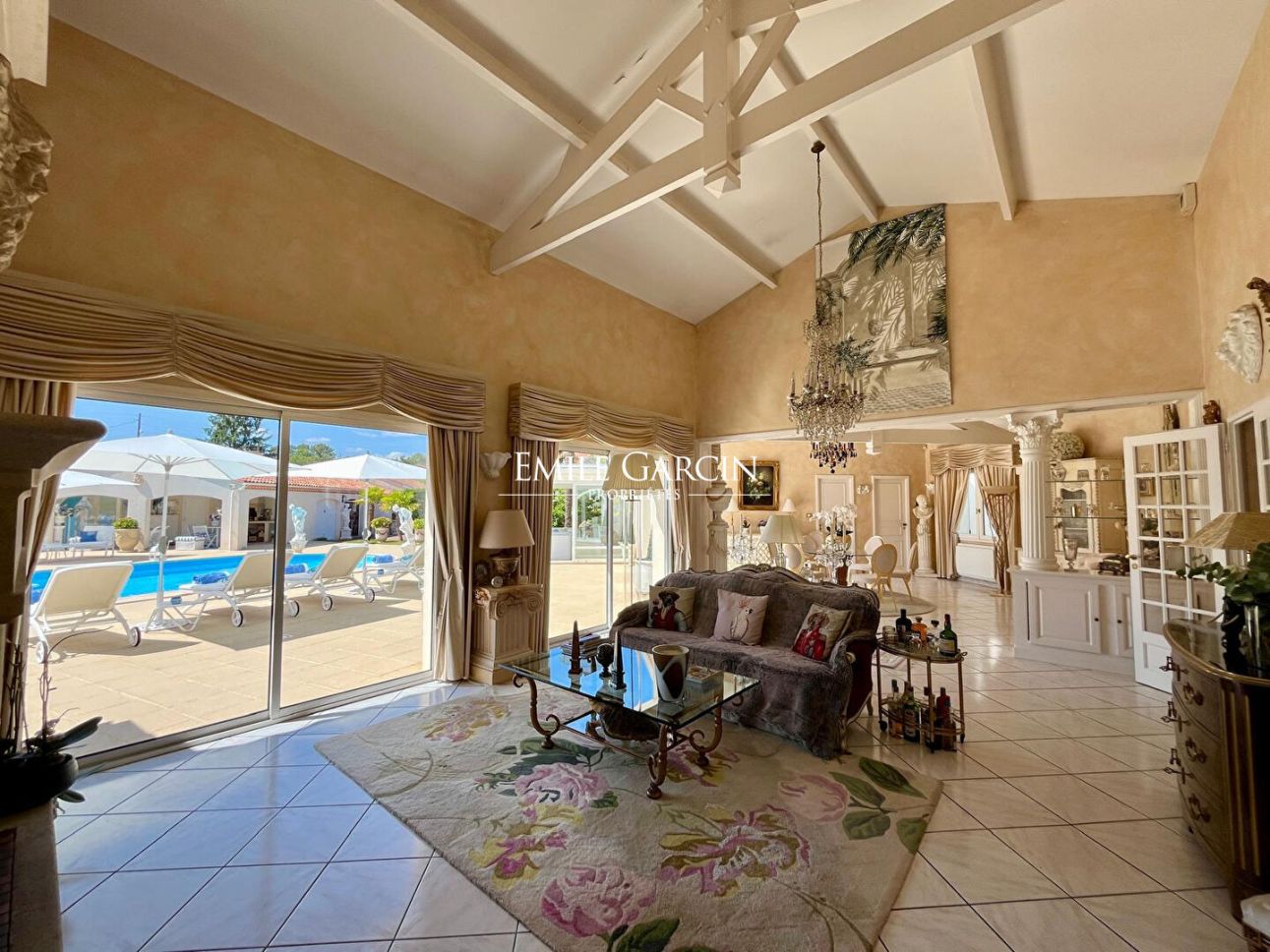 Les volumes généreux communiquent harmonieusement avec les espaces extérieurs : terrasses couvertes, pergola avec barbecue, et véranda chauffée face à la piscine permettent de passer des moments conviviaux en toute intimité.