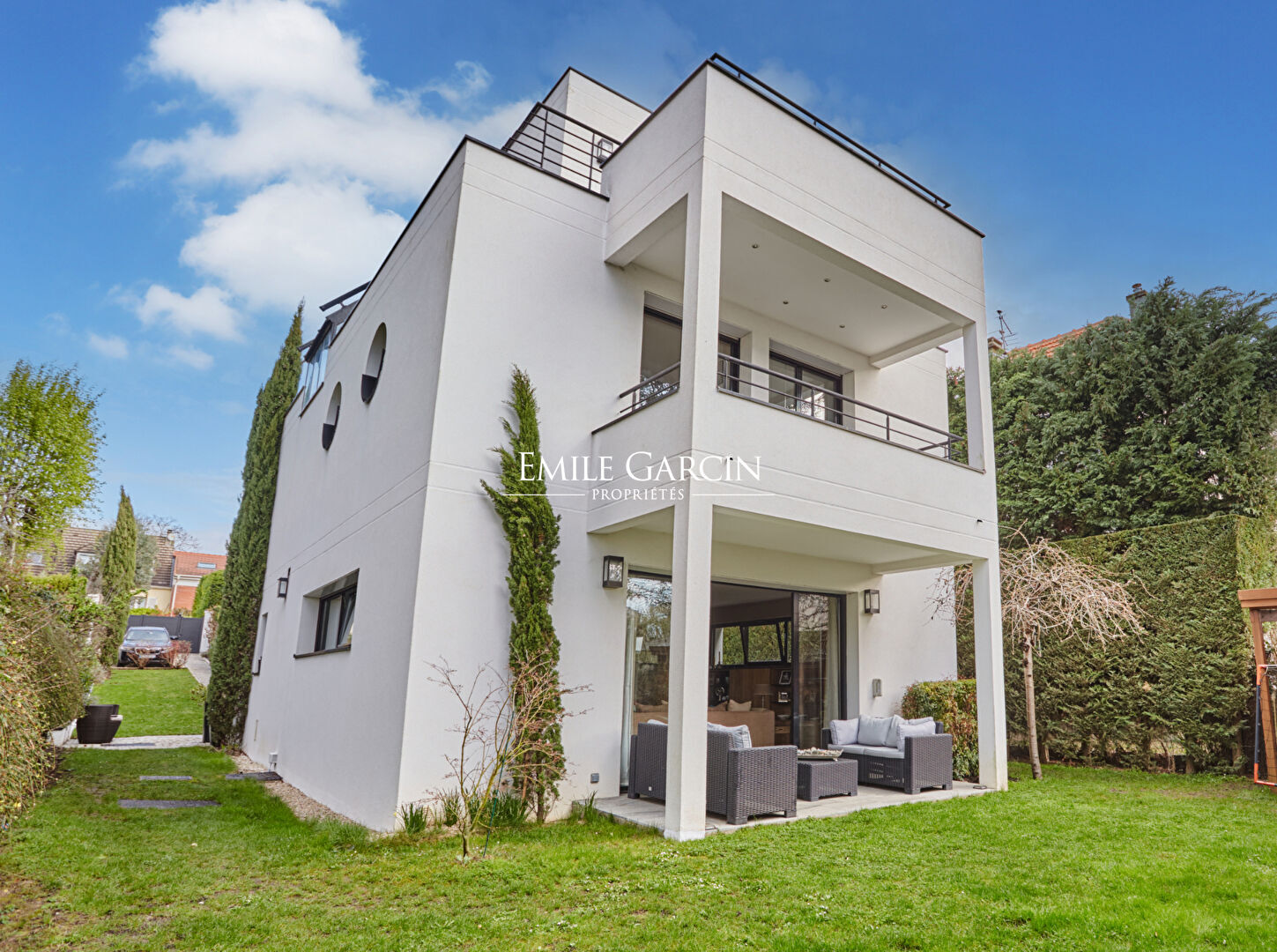 Saint-Cloud, quartier Pasteur ,Maison d'architecte contemporaine avec jardin, prestations haut de gamme. Dans un environnement résidentiel recherché de Saint- Cloud, cette élégante maison d'architecte construite en 2009 de 190 m² habitables est complétée par un sous-sol total aménagé de 72 m². Elle est édifiée sur un terrain clos et arboré de 498 m². Répartie sur trois niveaux, cette propriété aux lignes contemporaines offre de beaux volumes et une luminosité remarquable. Elle est organisée de la manière suivante : Au rez-de-chaussée, une entrée ouvre sur une vaste pièce de réception avec séjour et salle à manger dotée d'une cheminée, prolongée par une cuisine aménagée et équipée. Des toilettes invités complètent ce niveau. Au premier étage, un palier dessert trois grandes chambres, une salle de bains, une salle de douche, un bureau, une lingerie ainsi qu'un toilette indépendant. Le deuxième étage est entièrement dédié à une suite parentale comprenant dressing et salle de bains avec toilettes. Le sous-sol aménagé est composé d'une grande pièce polyvalente avec home cinéma et espace salle de sport, deux pièces supplémentaires actuellement utilisées en dressings, ainsi qu'une chaufferie. A l'extérieur, le jardin clos et paysager dispose d'un abri de jardin et d'une aire de stationnement permettant d'accueillir trois véhicules, incluant une borne de recharge électrique. La maison est en parfait état, réalisée avec des matériaux de grande qualité et offre un cadre de vie privilégié. Localisation idéale : à proximité immédiate des écoles Montessori et internationales (américaine et allemande) à 800 mètres du marché des Avelines et de l'entrée piétonne du parc de Saint-Cloud Une propriété familiale rare, alliant architecture contemporaine, confort et emplacement privilégié aux portes de Paris.