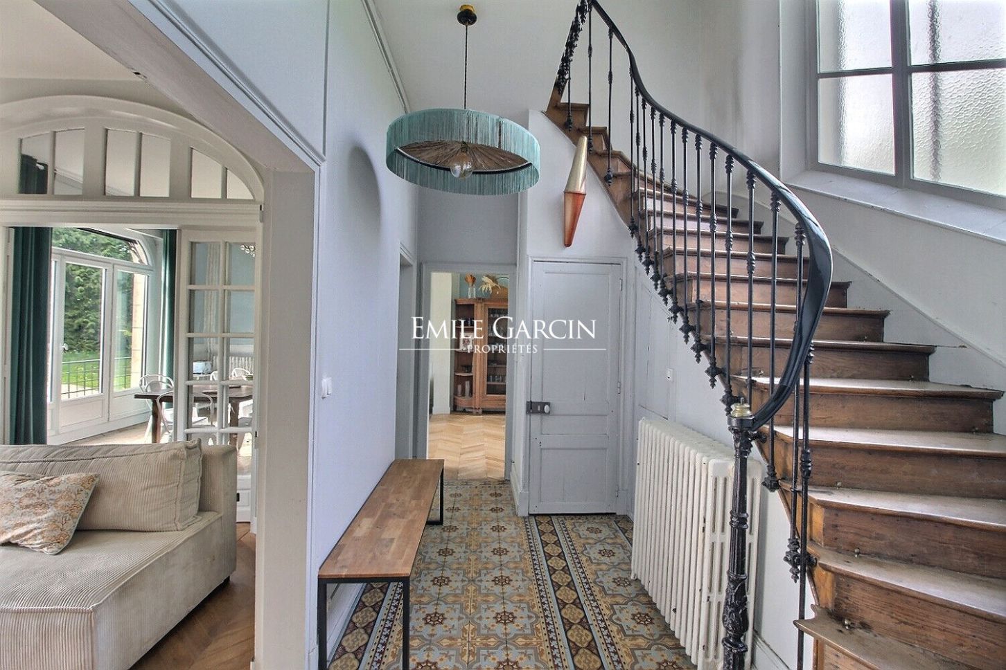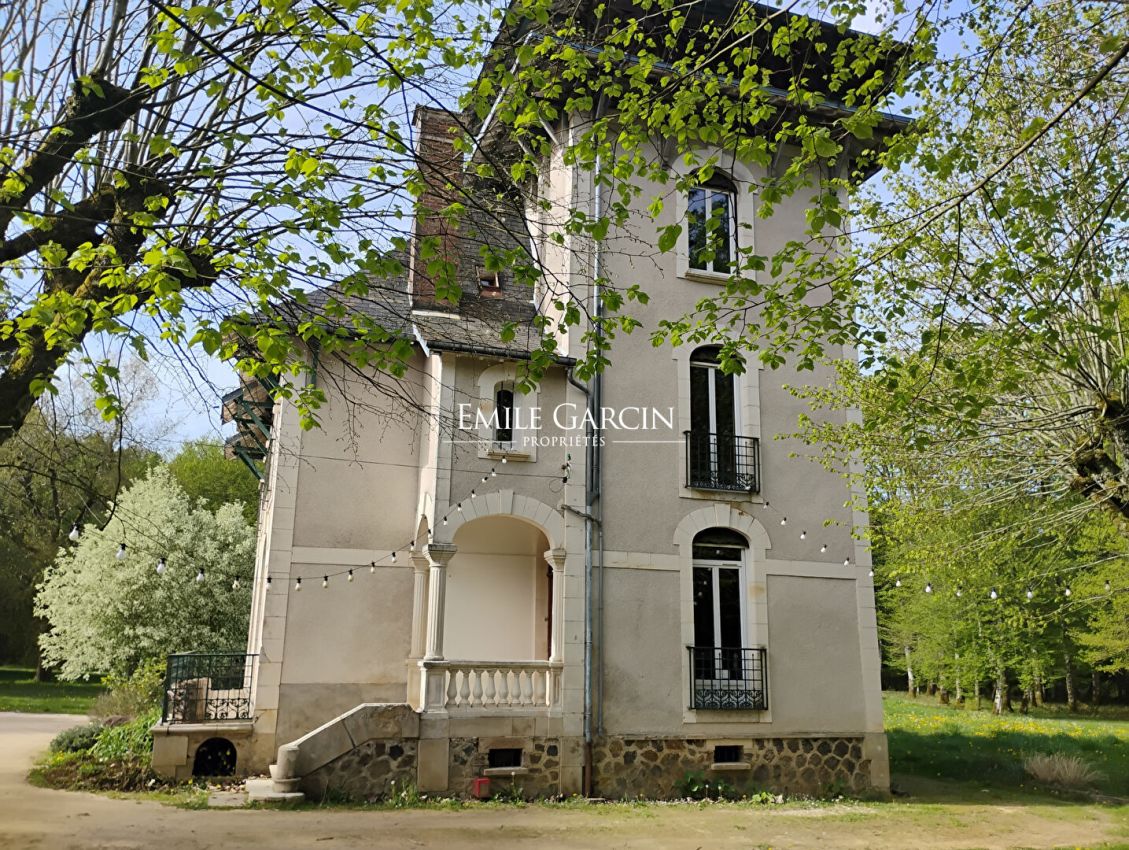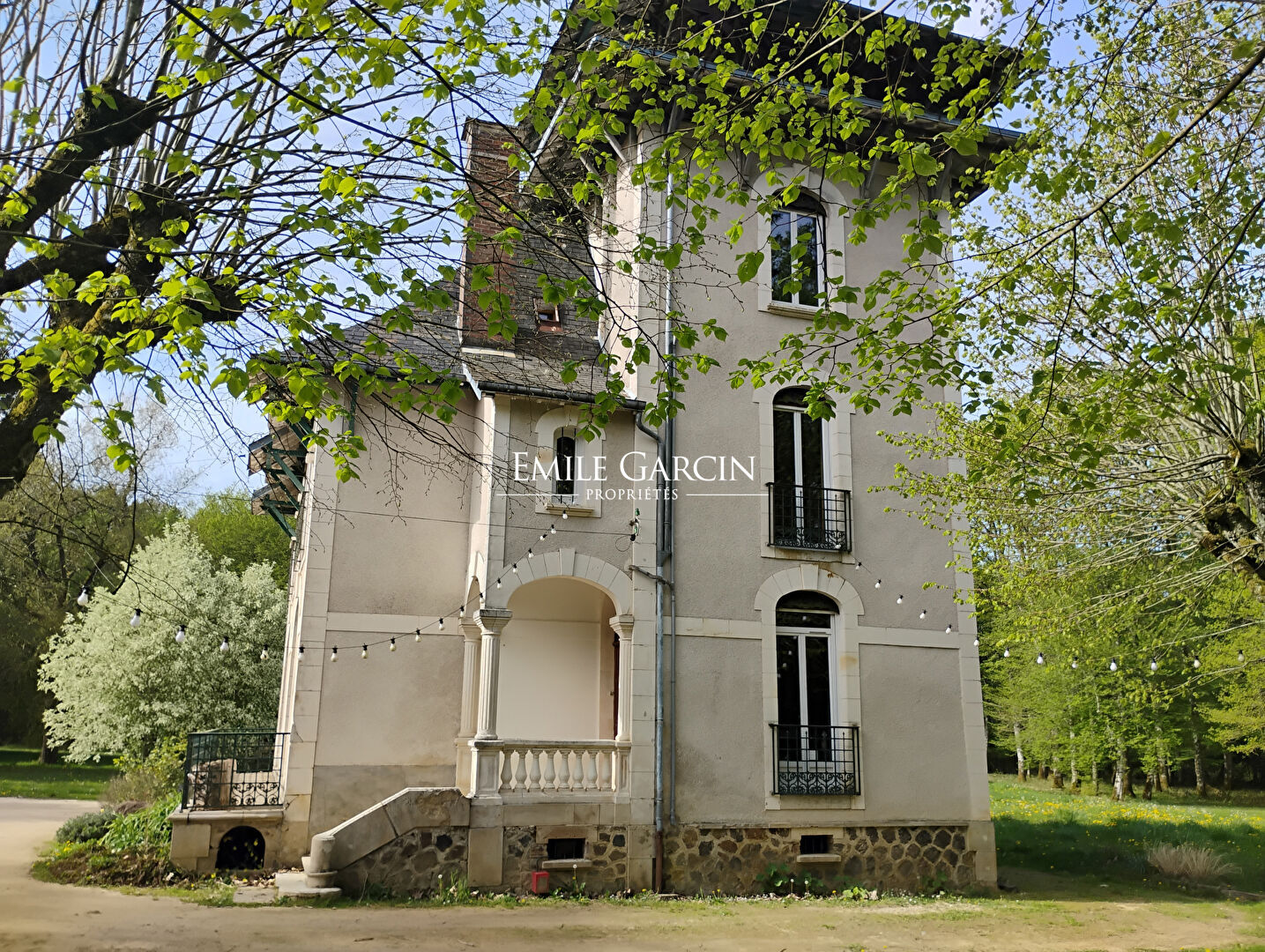 A deux pas du charmant village de saint Sauveur en Puisaye, une superbe propriété entièrement rénovée datant du début du XIX ème siècle d'une superficie de 300m2 avec dépendance sur un parc arboré de 2ha. La demeure principale se compose d'une entrée surélevée avec perron et marquise comprenant l'escalier principal desservant les étages et deux belles pièces de réception en L, un salon et une salle à manger traversante avec poêle et cheminée, de larges portes fenêtres avec balcon filant et un bow-window, une cuisine contemporaineet entièrement équipée donnant sur le parc aux arbres bicentenaires. Au premier étage 3 vastes chambres avec salle de bain et douche ayant conservées leur charme d'origine, cheminées, parquets de chêne, émaux de Briare. Au second et dernier étage une grande chambre d'enfants aménagée en dortoir aux nombreux couchages et une suite ou bureau avec accès sur un toit terrasse avec mirador dominant la campagne environnante.