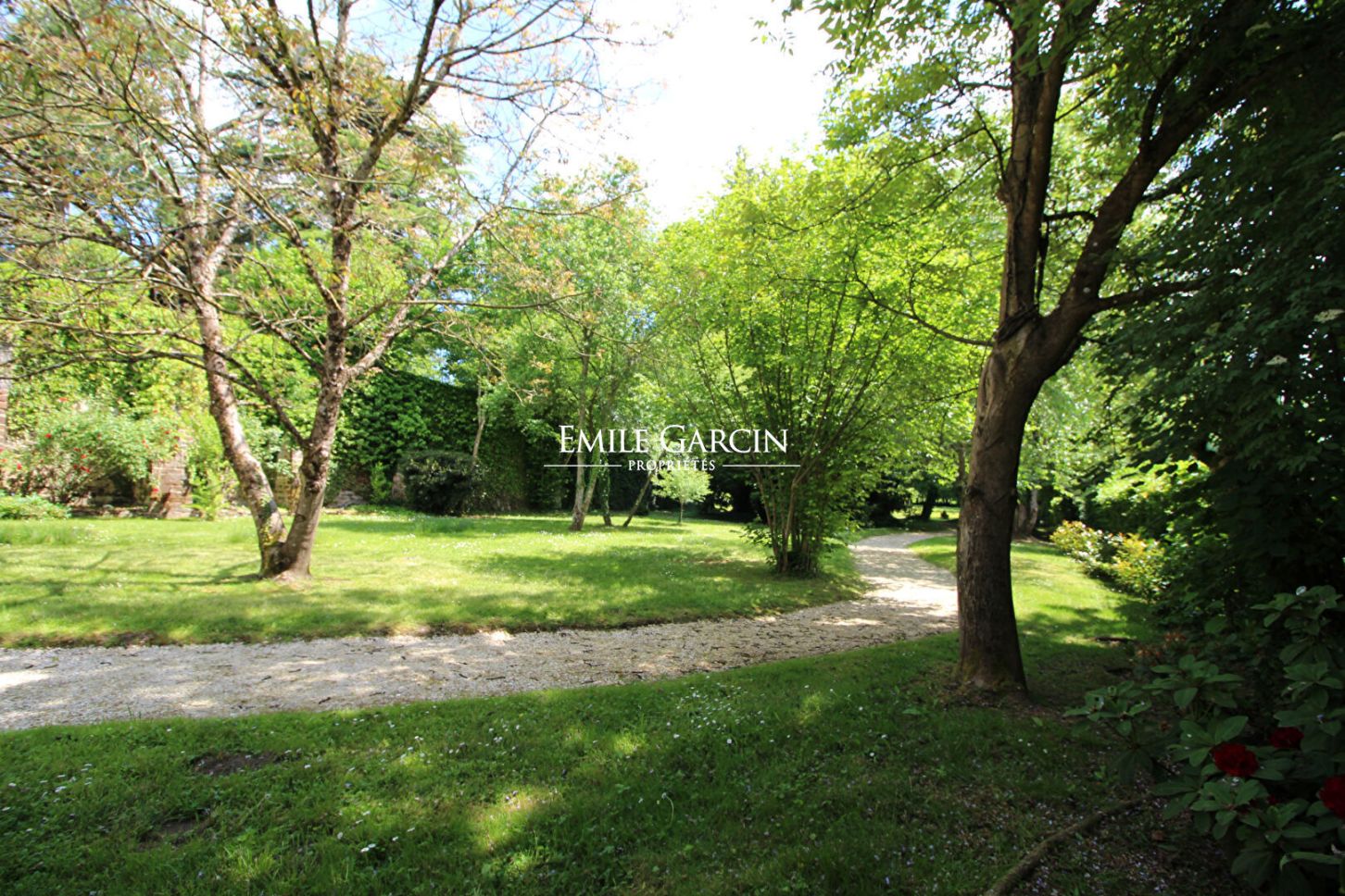 A l'arrière accessible par un second portail, un jardin dérobé, véritable écrin de verdure, aux allées dessinées et l'une des plus belles vues sur le château.